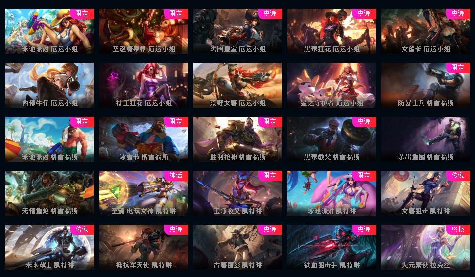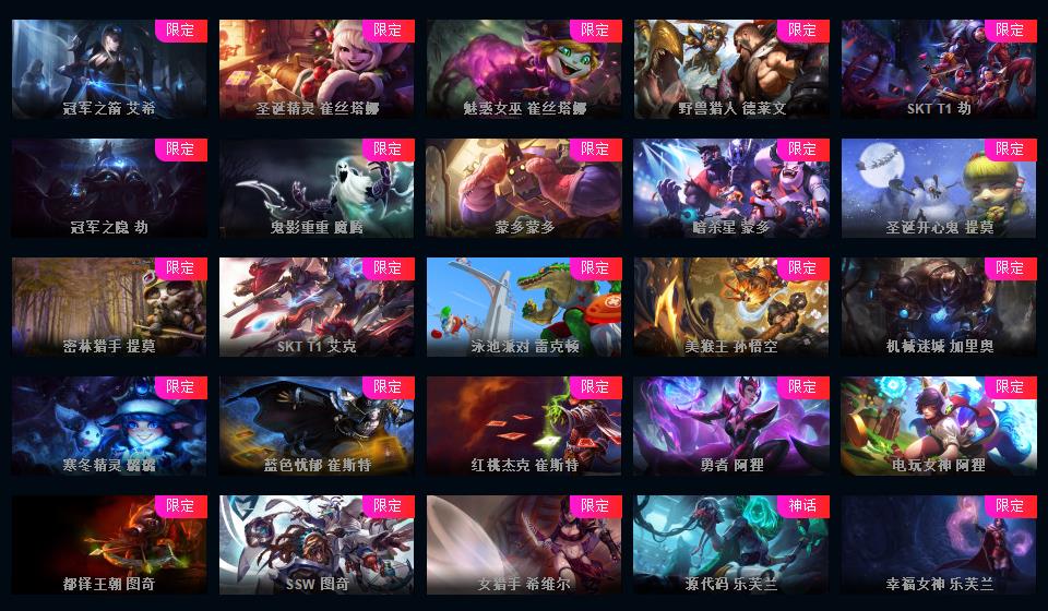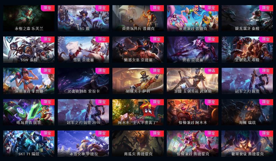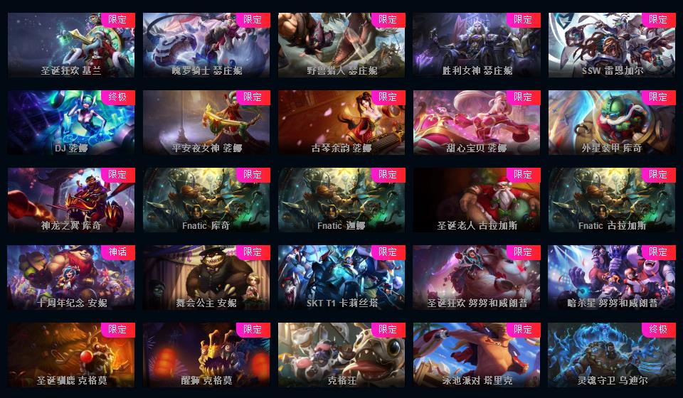 613皮▲108限定皮肤+龙瞎龙琴舞会海克斯安妮花木兰嫦娥等各种年限皮肤多冰原狙击等优质皮肤