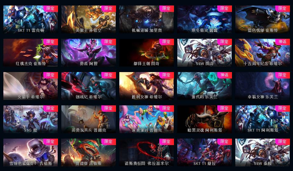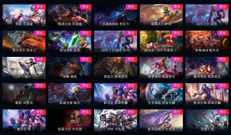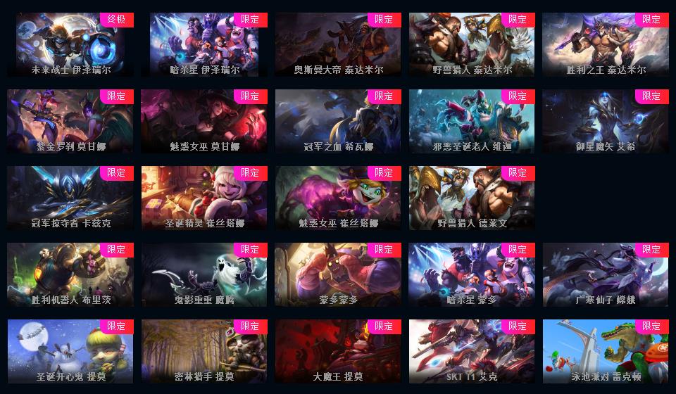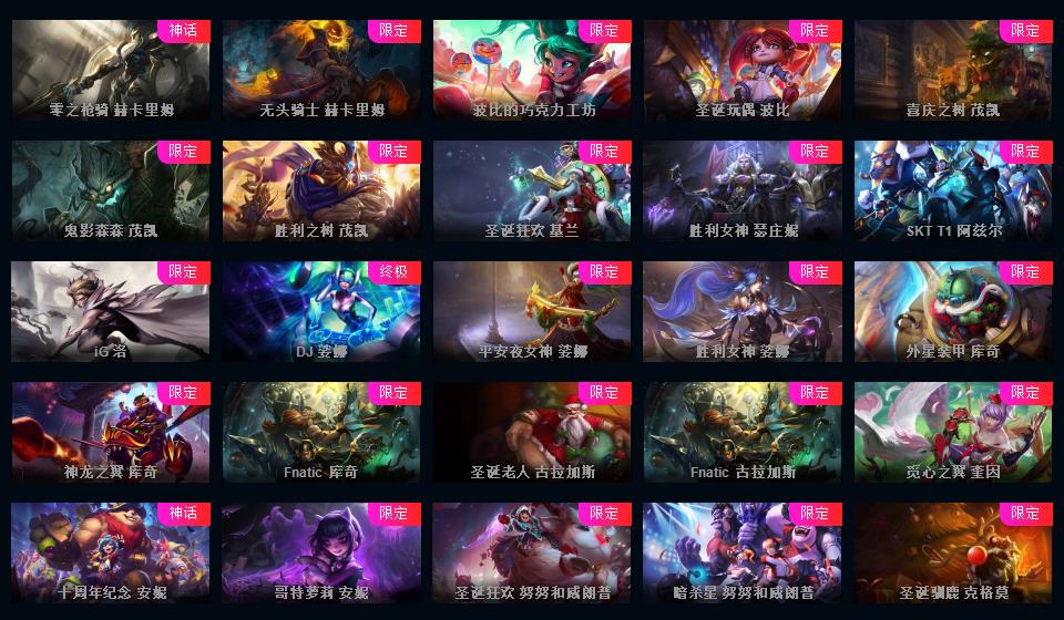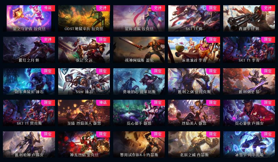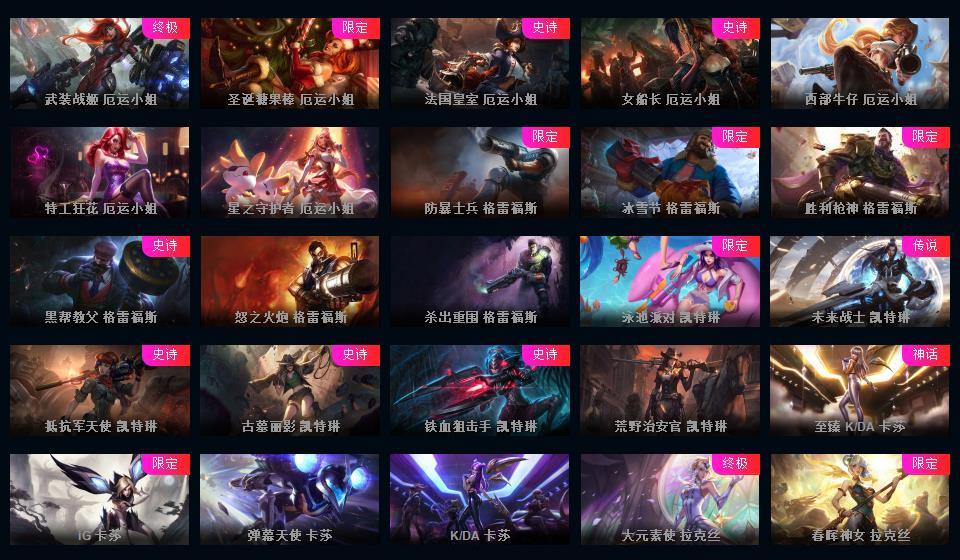 700皮+15神话至臻薇恩亚索卢锡安卡莎摄魂薇恩IG签名全套FPX签名全套KDA全套签名皮肤+新皮超多