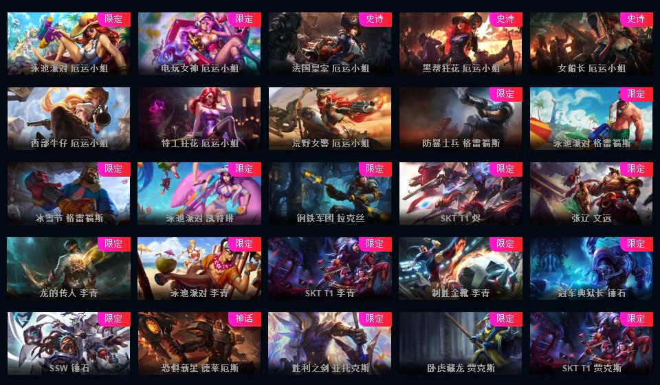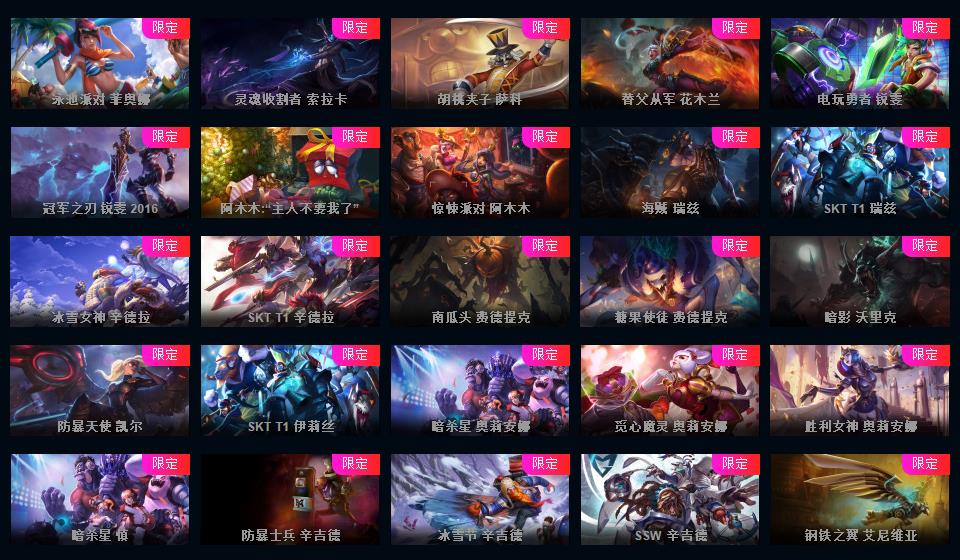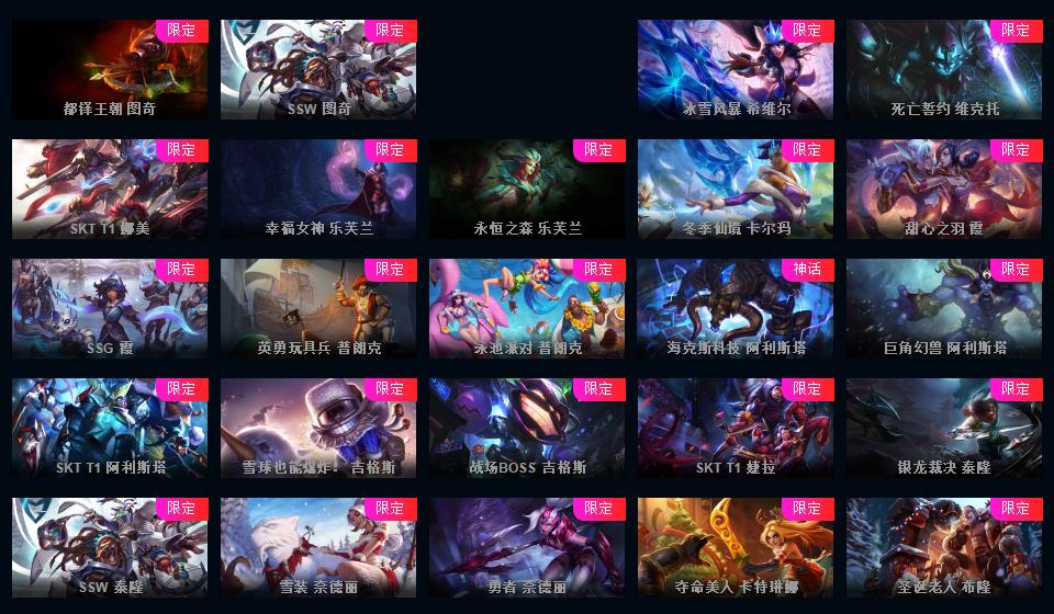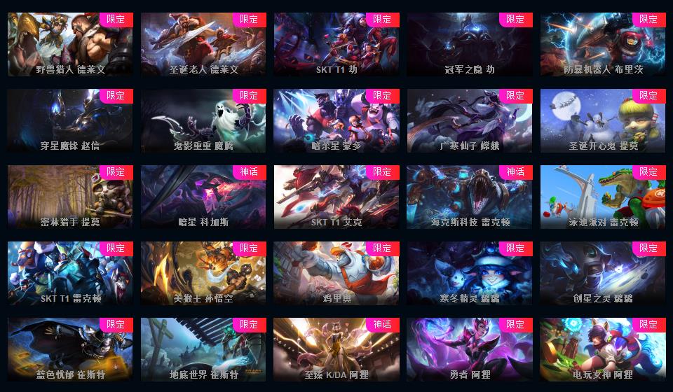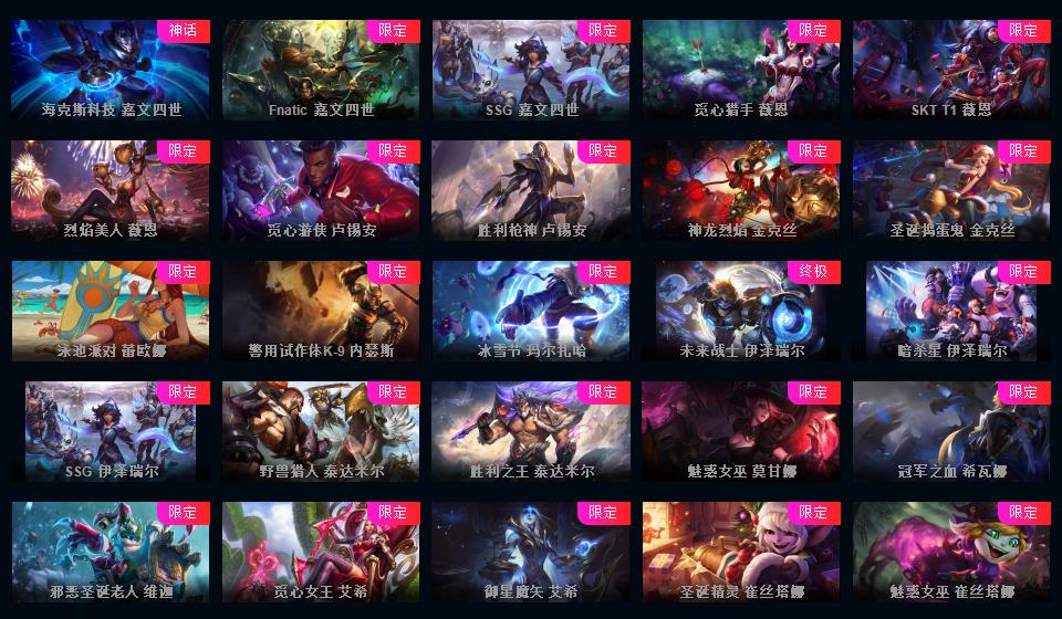 👼 皮肤帝实时更新皮肤 1008皮肤 龙虾 征服者 海克丝系列 主播级土豪号 梦游仙境 花木兰