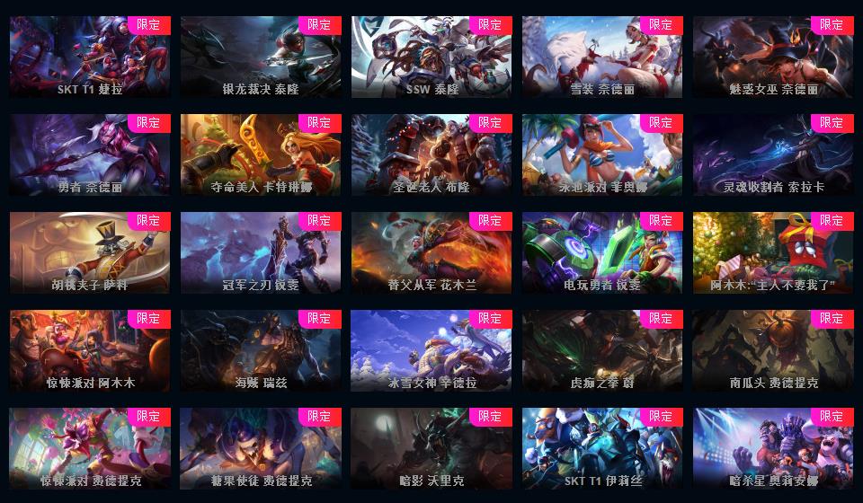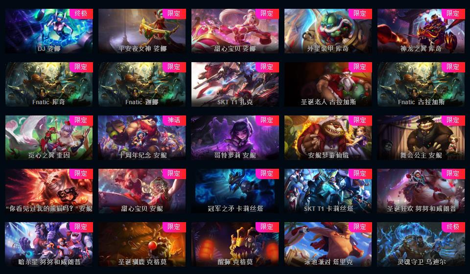 623皮▲160限定皮肤IG签名全套龙琴龙猴钢铁拉克丝海克斯安妮鳄鱼皇子舞会安妮情人节万圣节皮肤超多