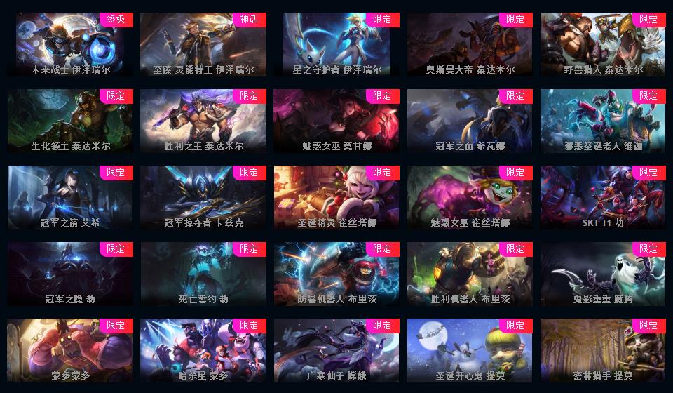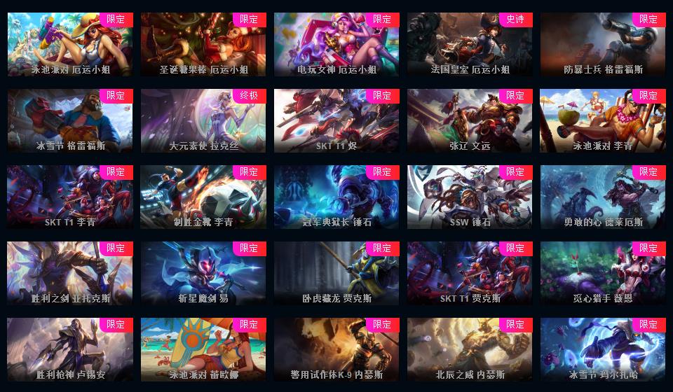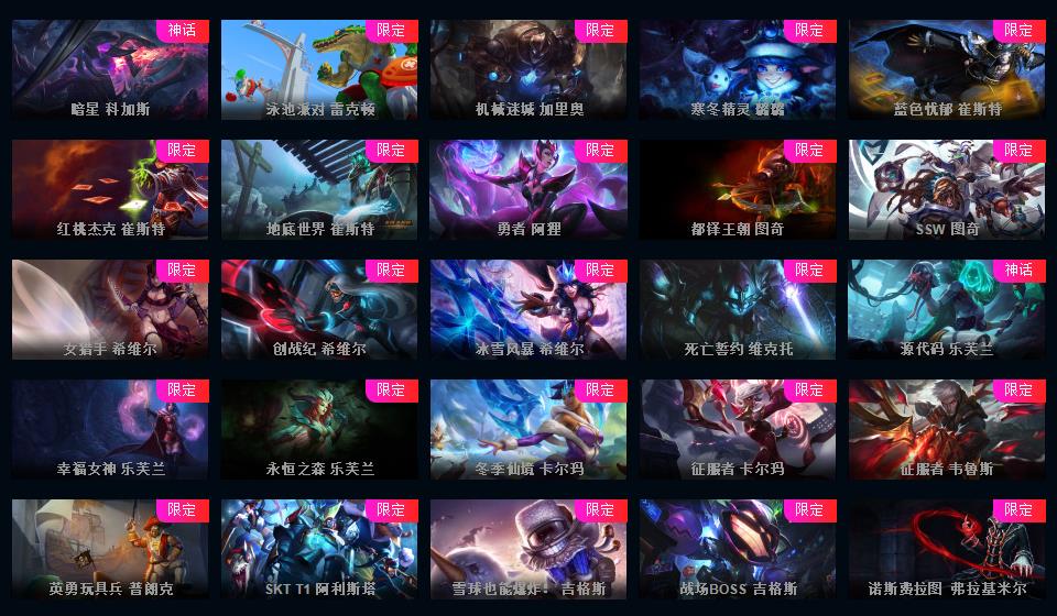 可排位-1469皮-503炫彩-201限定-86传说-34神话至臻-龙虾-至臻卡莎-阿卡丽-寡妇-阿狸-女警-薇恩-ez-万豪-卢锡安等-超多年限-情人节