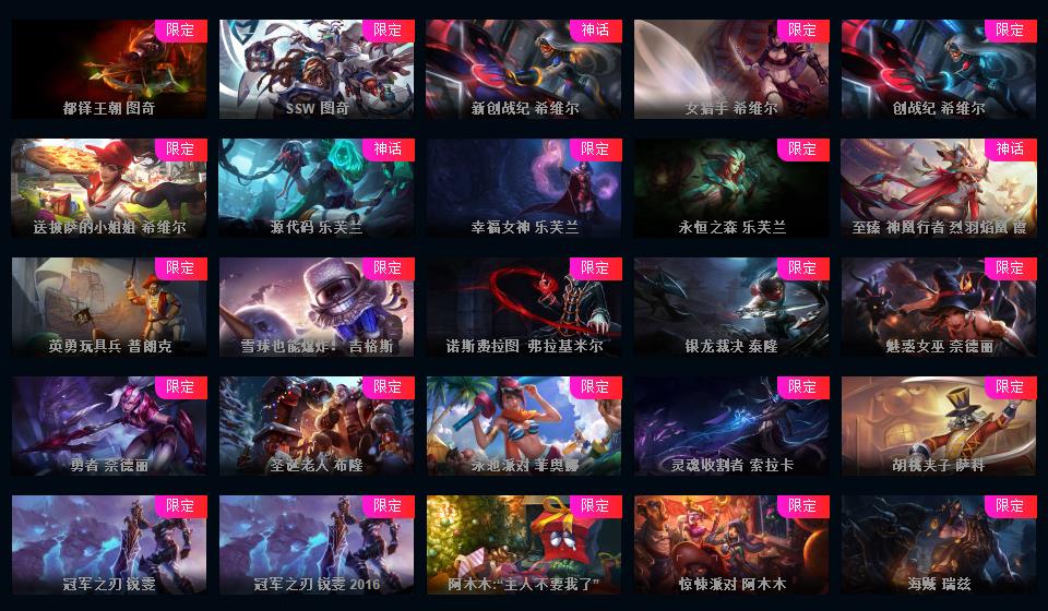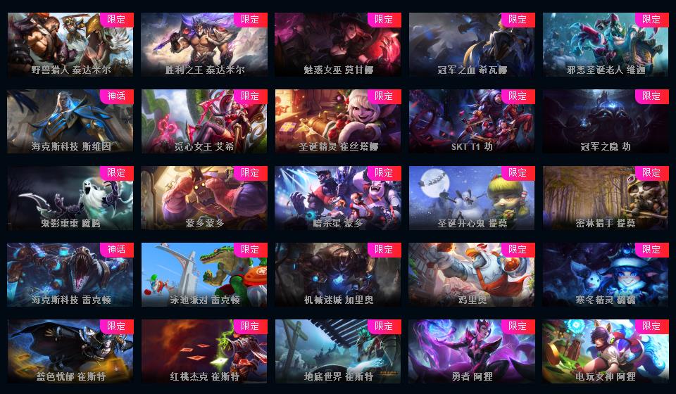 真实1687皮/黄金可排位/66神话/51至臻/151限定/94传说/至臻卡沙-阿卡丽-锤石-万豪-ez-永恩-妮蔻等/海克斯科技薇恩/龙年限定4个/超多年限超