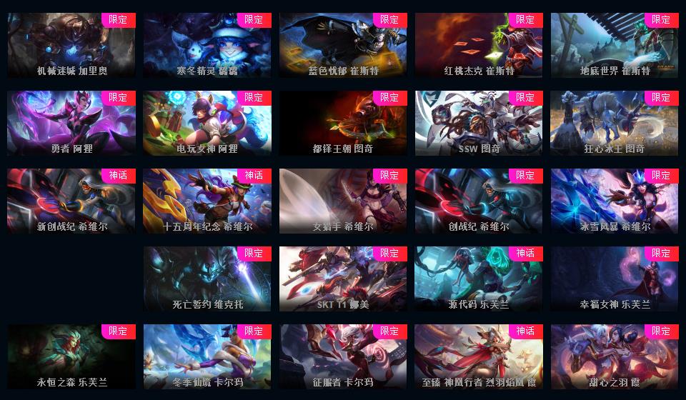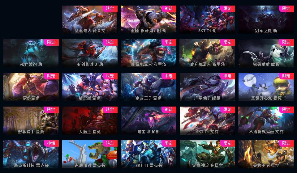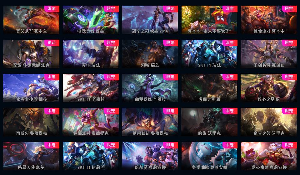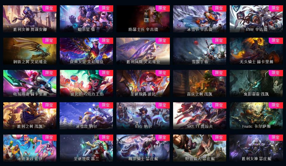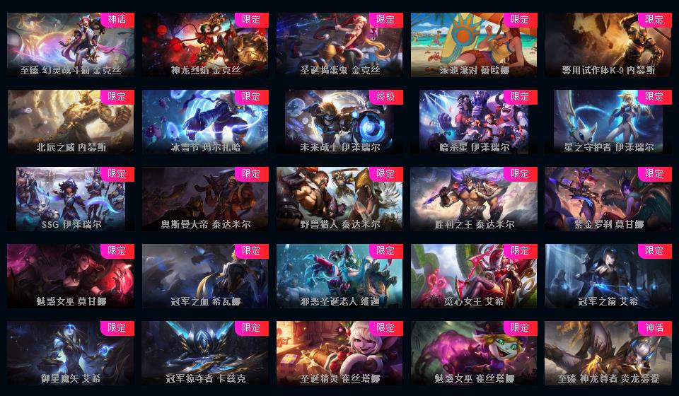 700皮肤龙瞎龙猴海克斯摄魂VN诺克恐惧新星勇敢的心奥斯曼大帝泳池派对源计划星之守护者周年限定战队皮