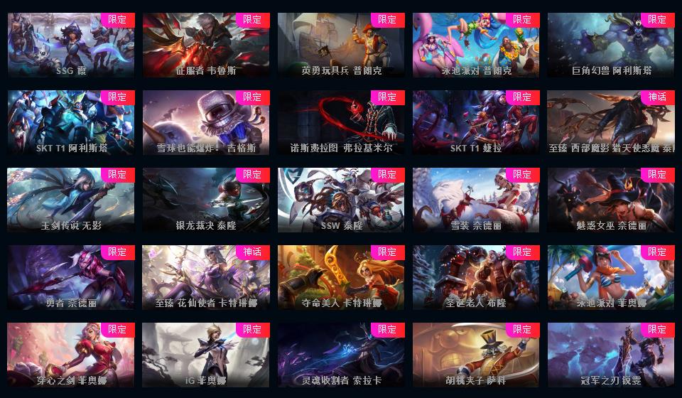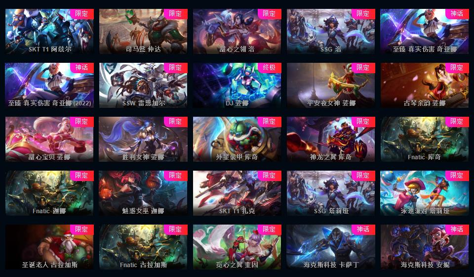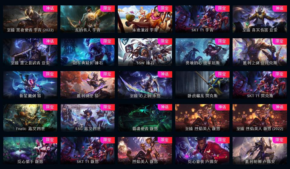 700皮+15神话至臻薇恩亚索卢锡安卡莎摄魂薇恩IG签名全套FPX签名全套KDA全套签名皮肤+新皮超多