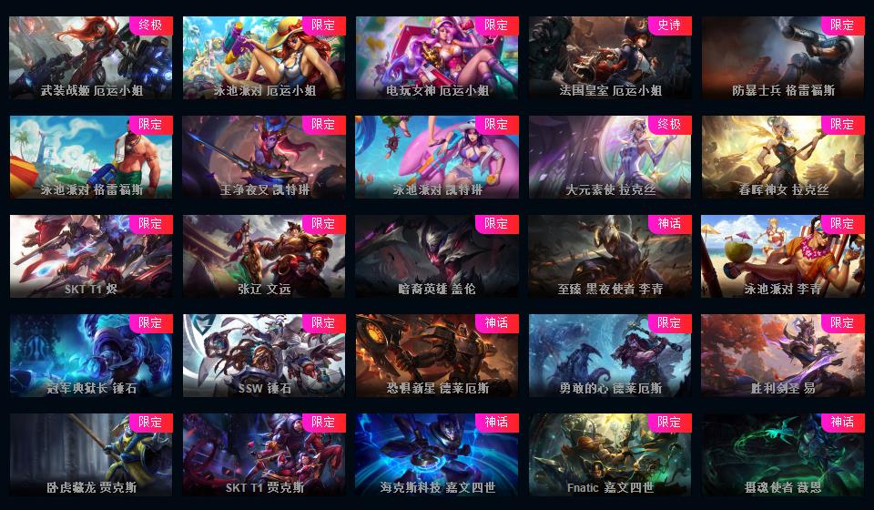 608皮▲全英雄+冰原阻击海克斯鳄鱼创战纪花木兰嫦娥鸡年蔚周年女枪诺手EZ爱心头羊年金克丝情人节发条艾希奎因琴女