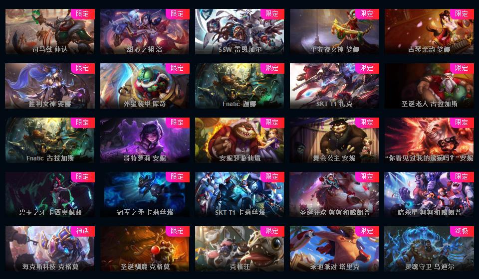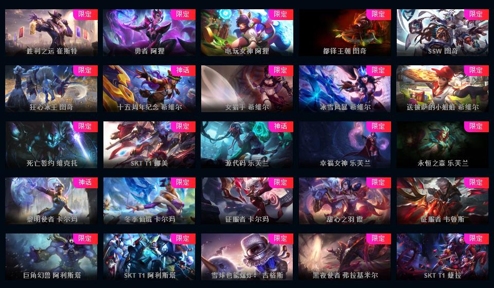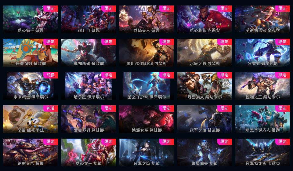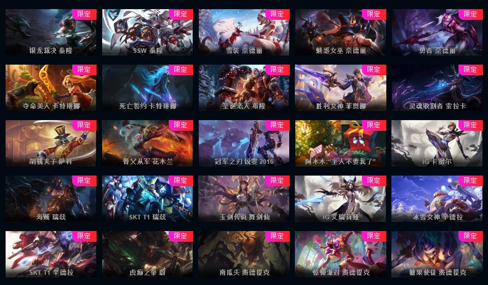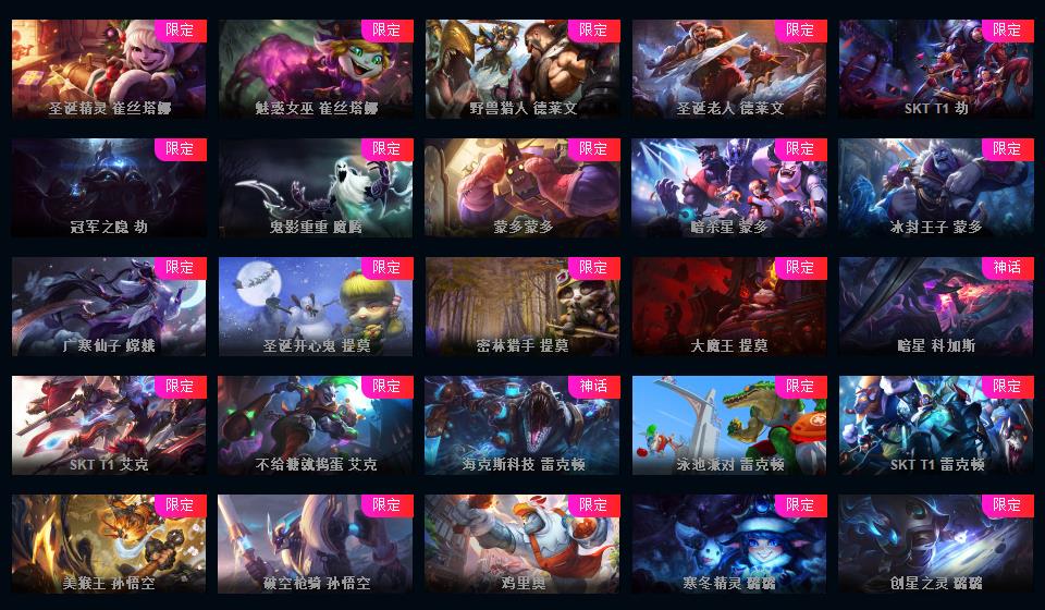623皮▲160限定皮肤IG签名全套龙琴龙猴钢铁拉克丝海克斯安妮鳄鱼皇子舞会安妮情人节万圣节皮肤超多