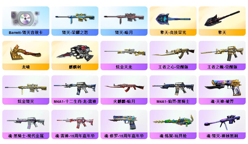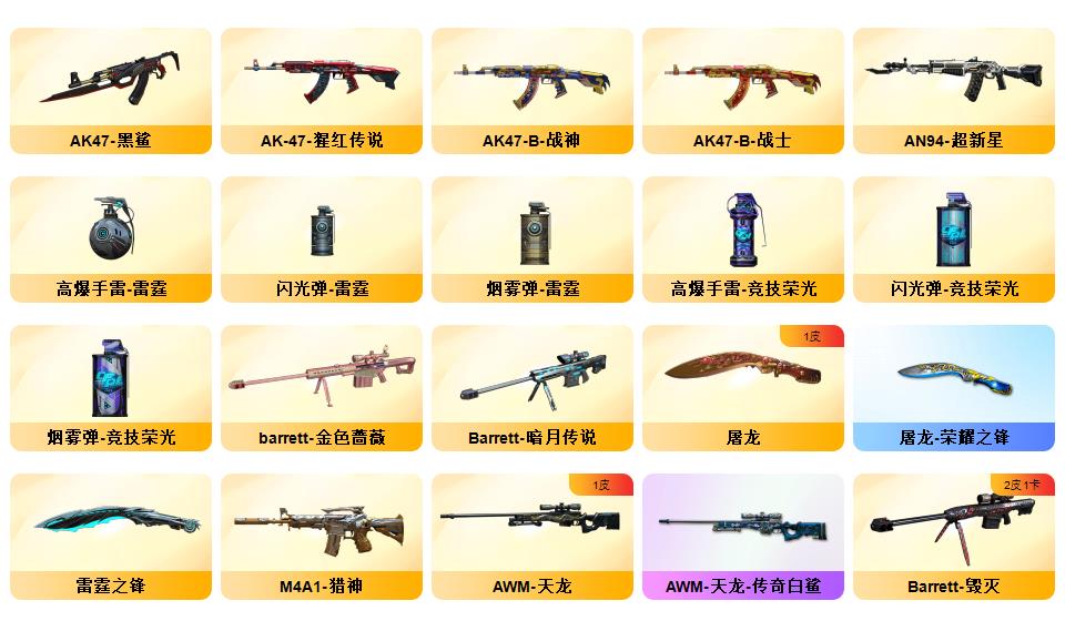 100V♧^荒漠琉璃^6烈双萌兔-蝴蝶^&冠军皮肤/柯尔特-竞技荣光&千变☞雷神☞黑骑士☞毁灭☞白虎☞8音效卡♧裁决音效卡