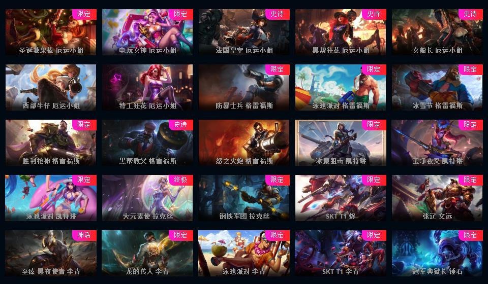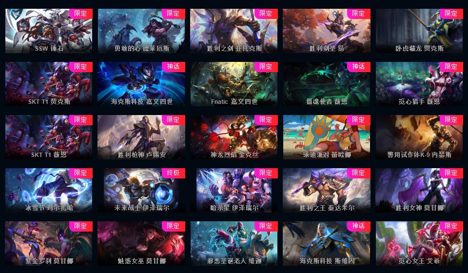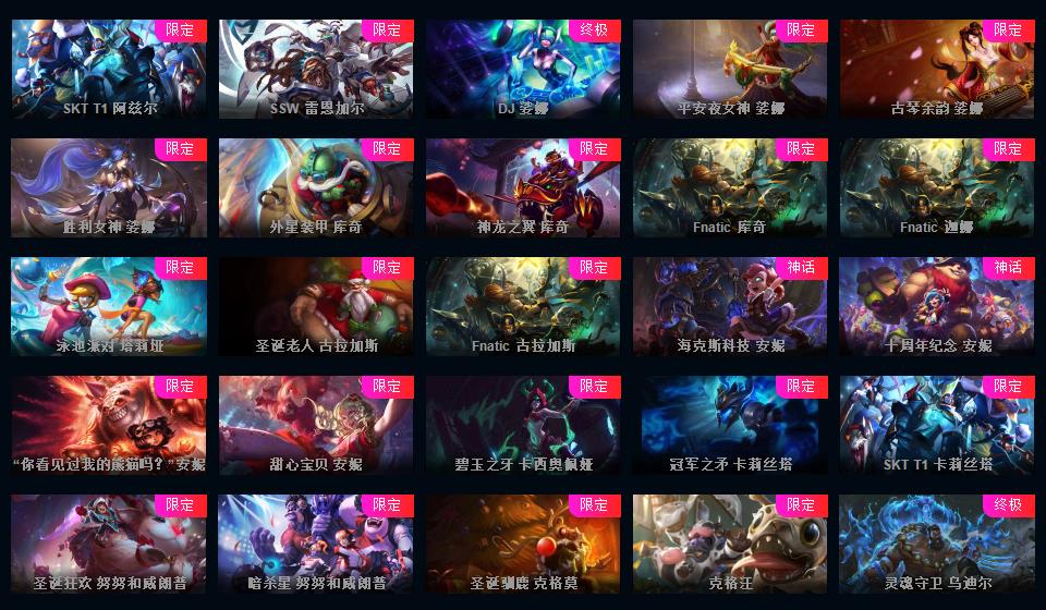 655皮▲龙瞎▲至臻凯隐▲至臻塞娜▲至臻亚索▲至臻蕾欧娜▲至臻拉克丝▲至臻瑞文▲至臻艾瑞莉娅▲至臻锤石▲至臻盖伦▲海克斯鳄鱼皇子希维尔▲创星御星崭星
