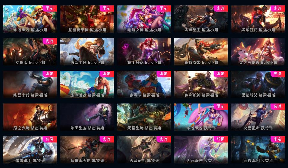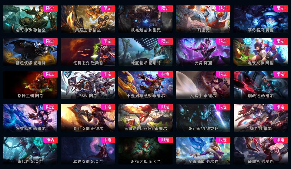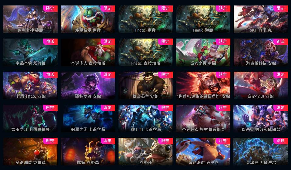 623皮▲160限定皮肤IG签名全套龙琴龙猴钢铁拉克丝海克斯安妮鳄鱼皇子舞会安妮情人节万圣节皮肤超多