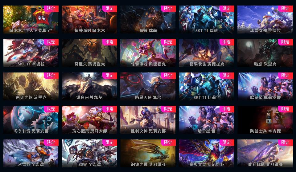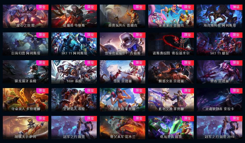 950皮肤◆黄蓝龙虾◆粉色萝莉◆摄魂VN◆海克斯恐惧新星◆斩星魔剑破空枪骑生化领主钢铁烈阳lol星之