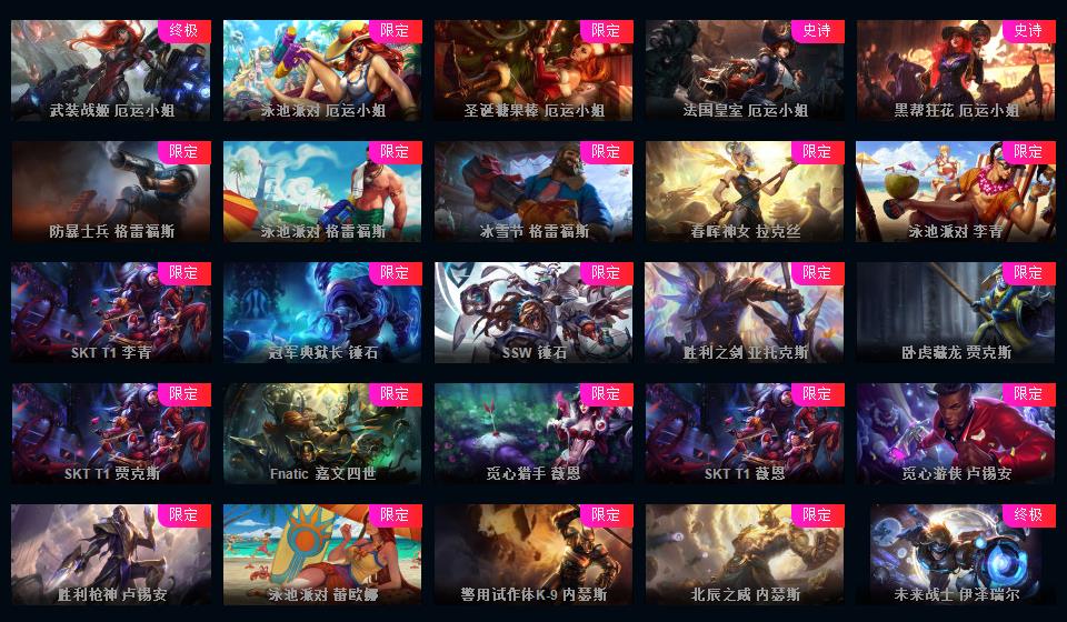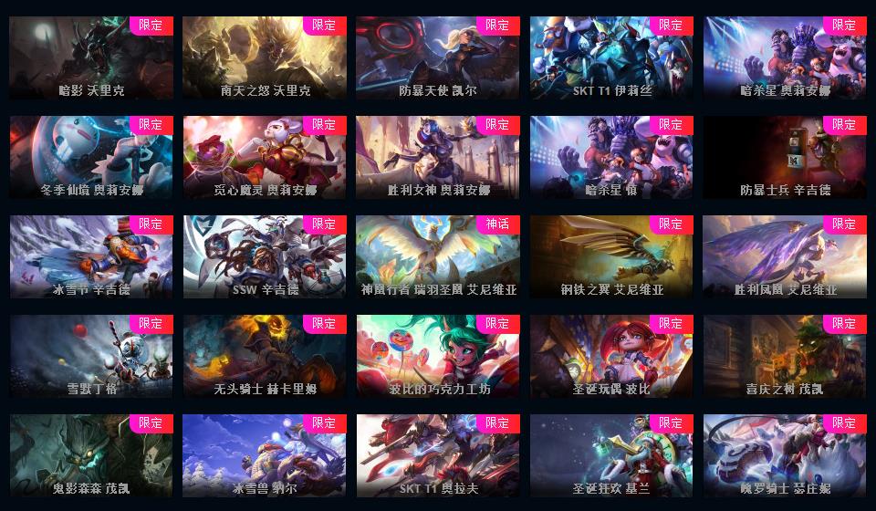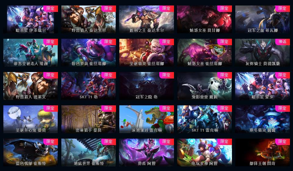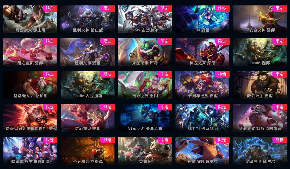 真实1296皮/可排位/15神话/201限定/73传说/龙虾+黑龙-至臻寡妇-小鱼-盖伦-万豪-剑魔-剑姬-石头人等/海克斯科技薇恩/超多年限/冠军皮肤超多