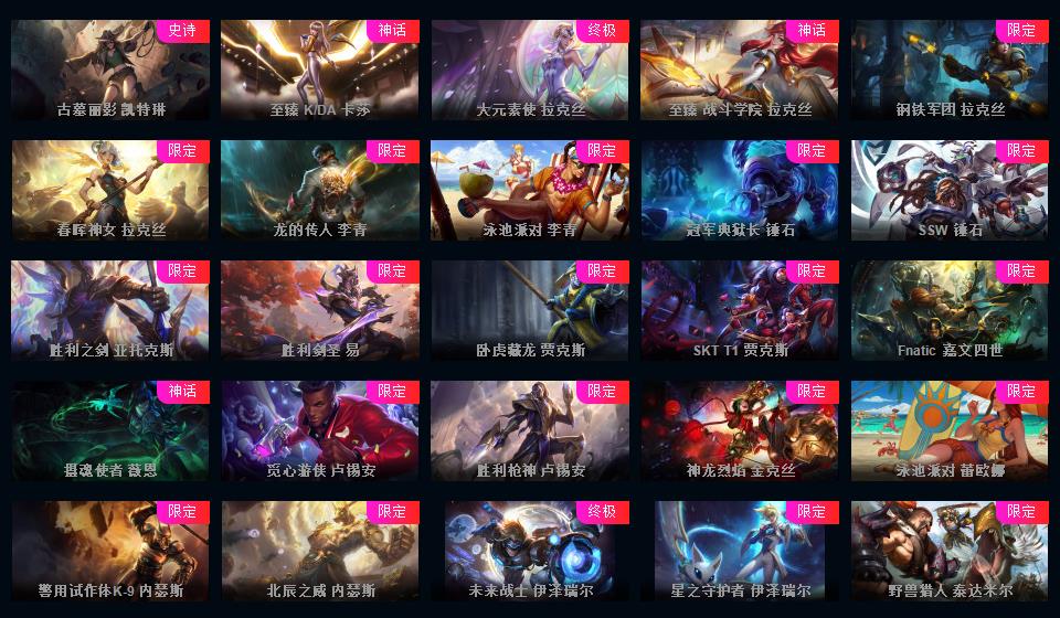1000皮肤★龙瞎ig签名全套★7海克斯摄魂VN恐惧新星★至臻卡莎战阵学院★8周年佐伊★生化领主奥斯