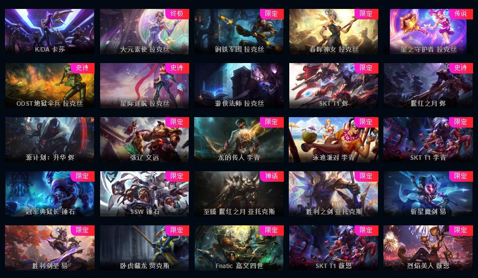 全英雄+13神话皮肤🌍至臻卡莎阿卡丽拉克丝奇亚娜提莫VN+冰原狙击+地底世界+钢铁拉克丝+嫦娥+龙琴+花木兰等