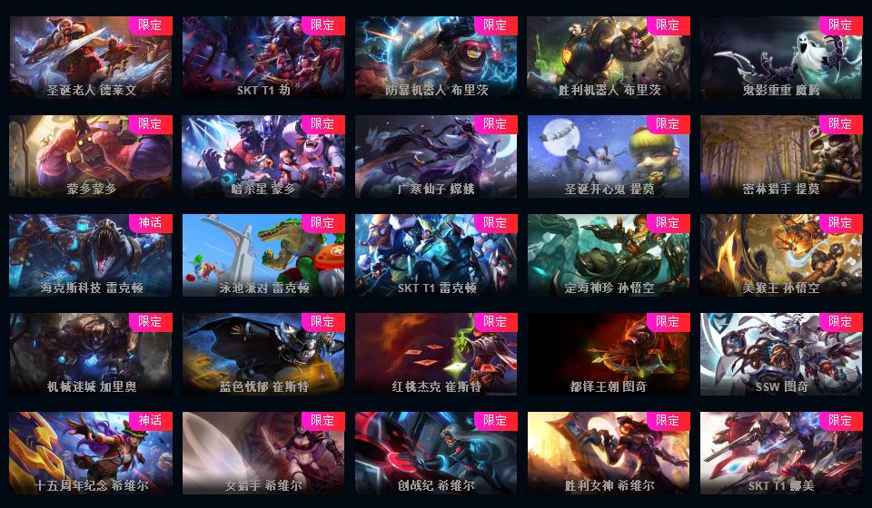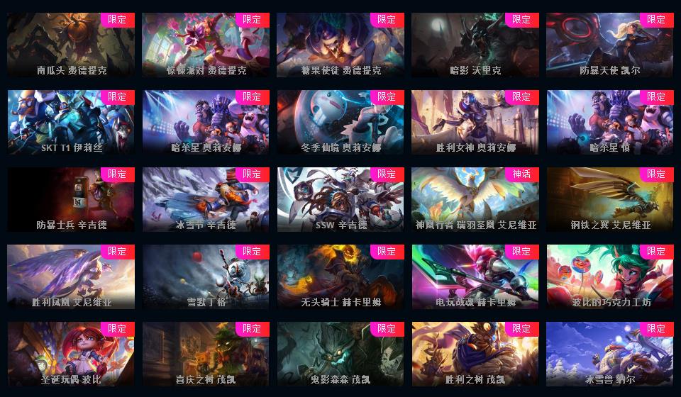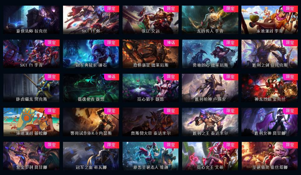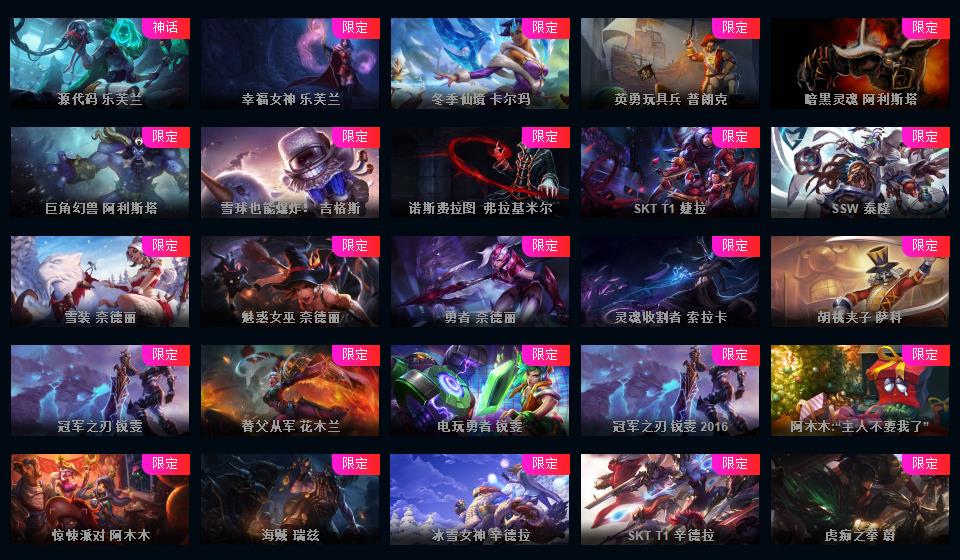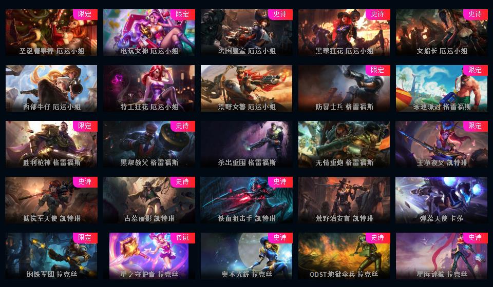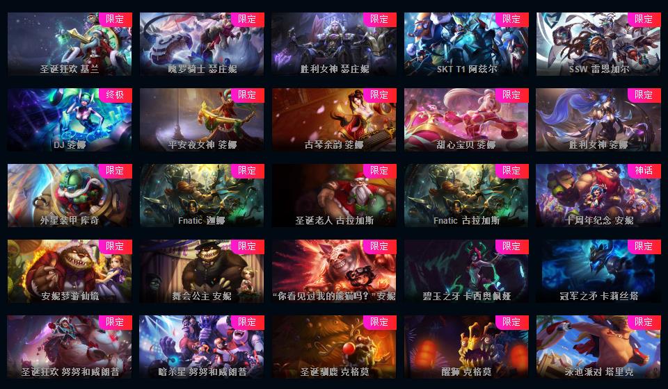 至臻卡莎、至臻奇亚娜、至臻女警、海克斯诺手、海克斯鳄鱼、钢铁拉克丝、克格汪、羊年金克丝、花木兰等优质皮肤