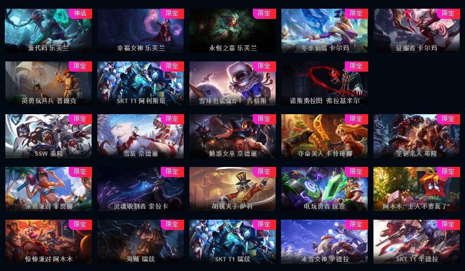 弗雷尔卓德-1629皮-69神话至臻-165限定-104传说-16臻彩-一代至臻卡莎-阿卡丽-寡妇-阿狸-至臻亚索等-超多年限-源计划套-情人节套-星守套-愚人