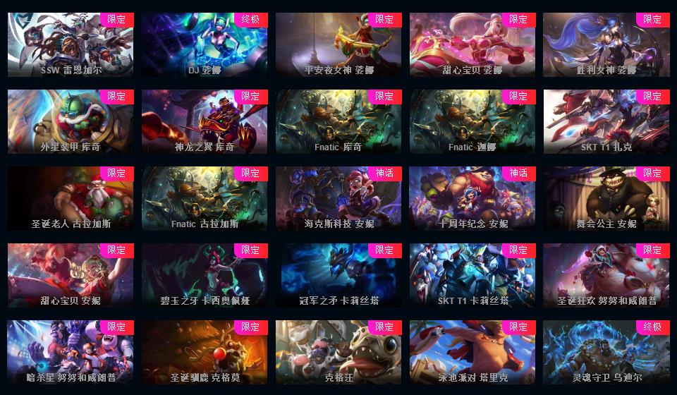 1050皮肤✘蓝龙虾✘冰原女警✘哥特萝莉✘龙刀龙琴羊丝冰雪丝✘周年女枪诺手安妮✘猴年女警莫甘娜✘嫦娥花