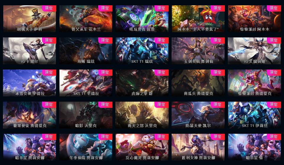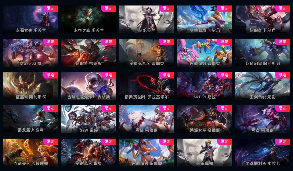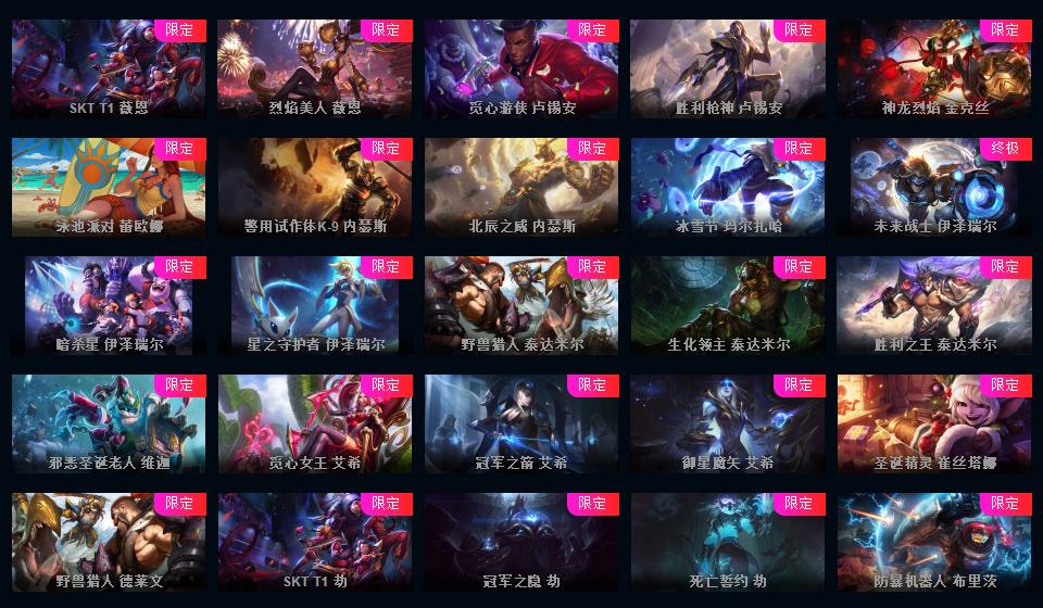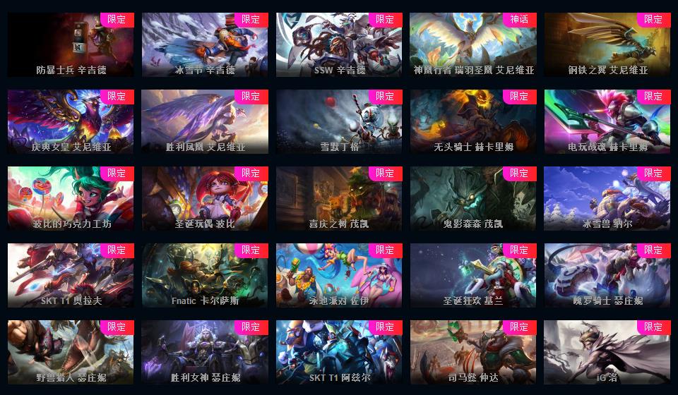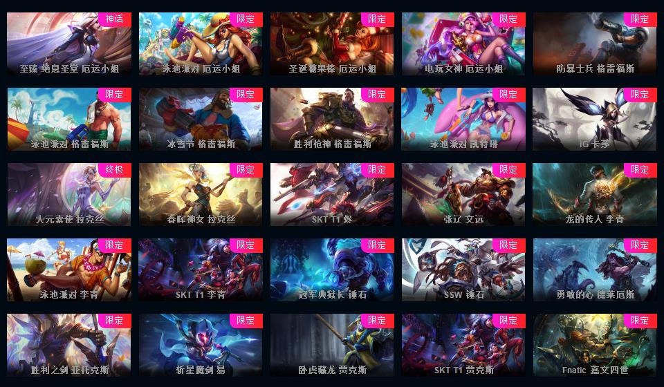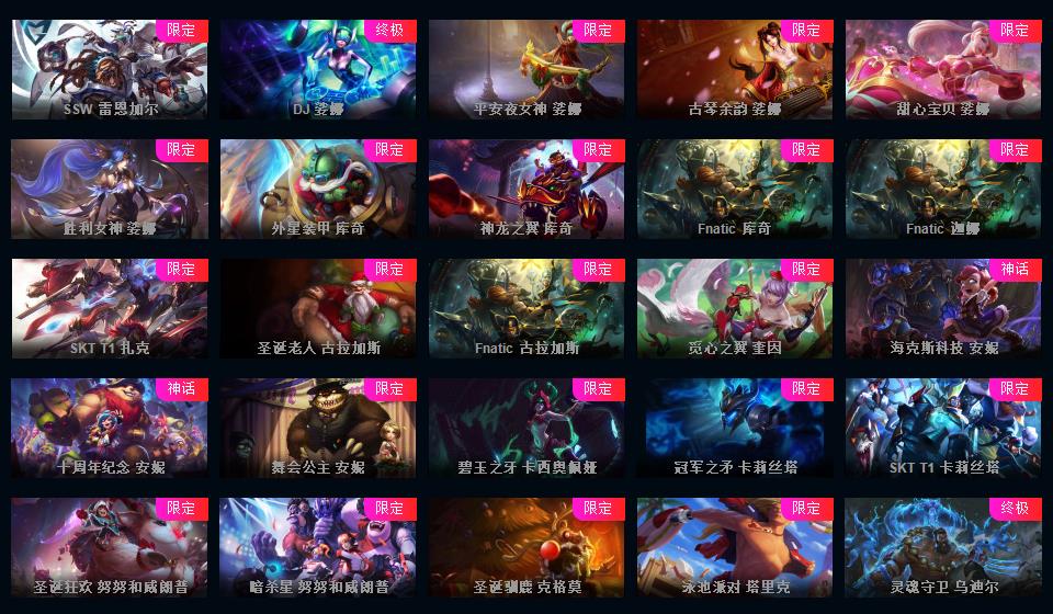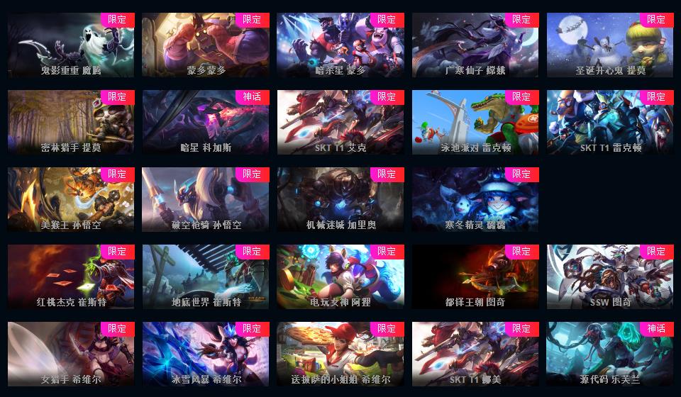 峡谷707原皮 487炫彩 54神话18臻彩 云顶4神话至臻龙的传人李青青花瓷拉克丝兔年棋盘 金克斯李青亚索特殊炫彩新神话多 冰雪节一套 源计划一套玉剑传说泳池