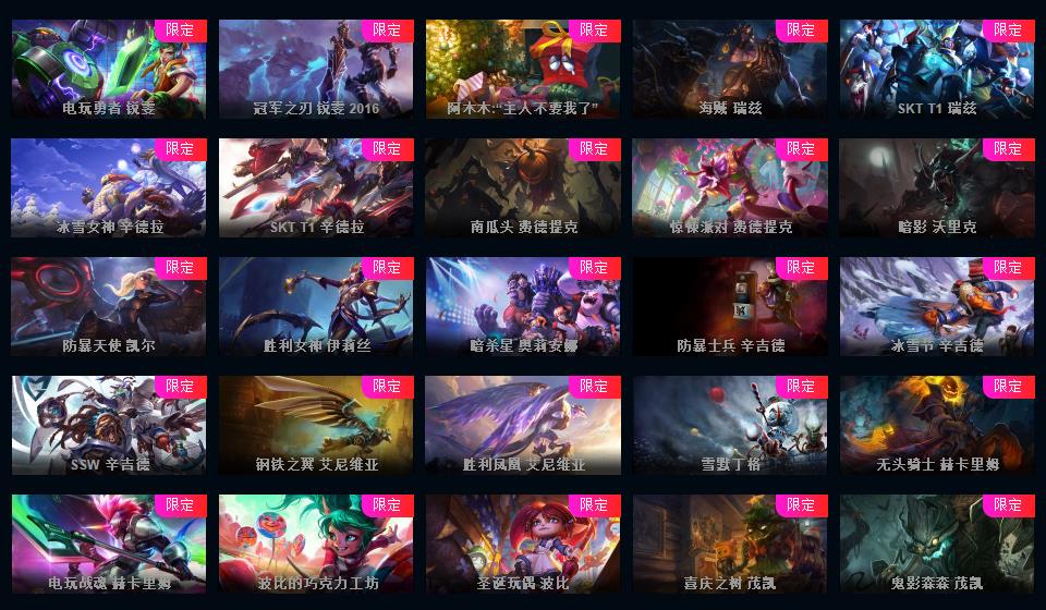 950皮肤◆元老议会◆莲花之令◆黑龙瞎◆摄魂VN◆斩星魔剑◆战熊骑士◆养蜂人艾欧尼亚LOL源计划星之
