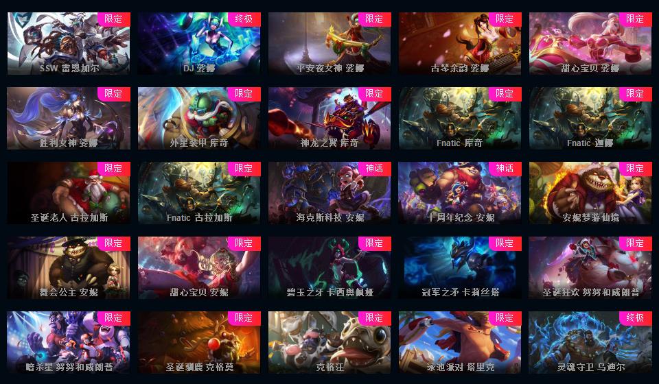 1250皮肤◆龙瞎至臻卡莎◆龙猴◆龙刀◆摄魂VN◆斩星魔剑◆战熊骑士源计划周年限定玉剑传说星之守护者