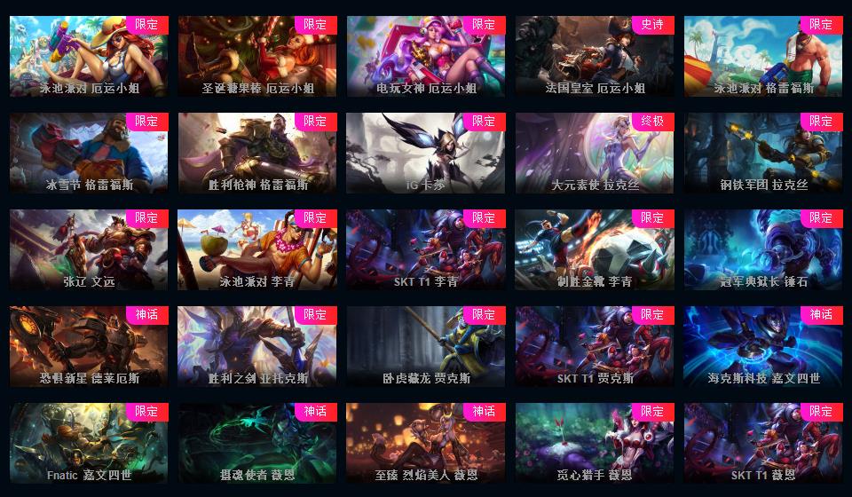 1000皮肤♥至臻卡莎♥战斗学院♥斩星魔剑♥御星魔矢♥披萨小姐姐全炫彩♥玉剑传说泳池派对祖安lol