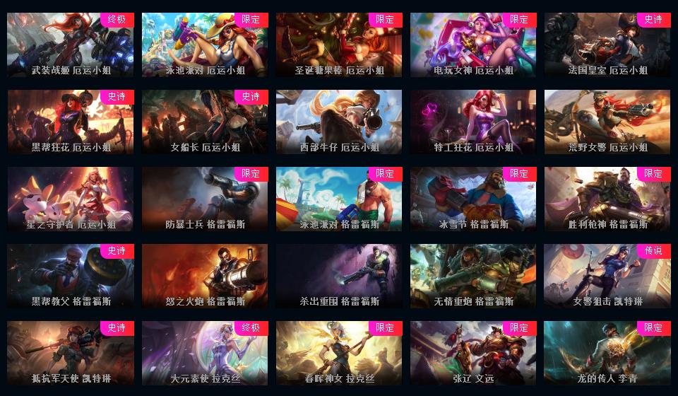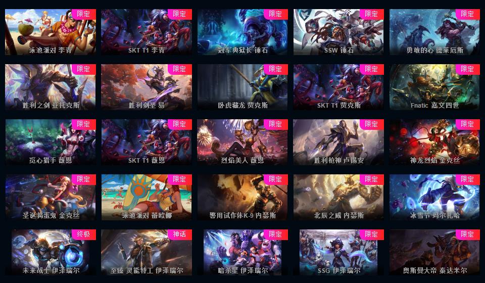 1000皮/满英雄/白银段可排位/龙瞎+龙琴+龙刀+龙猴/摄魂薇恩/至臻琪亚娜/至臻瑞文/3终极皮/泳池派对全套/100+限定/60传说/每个英雄都有一款以上好