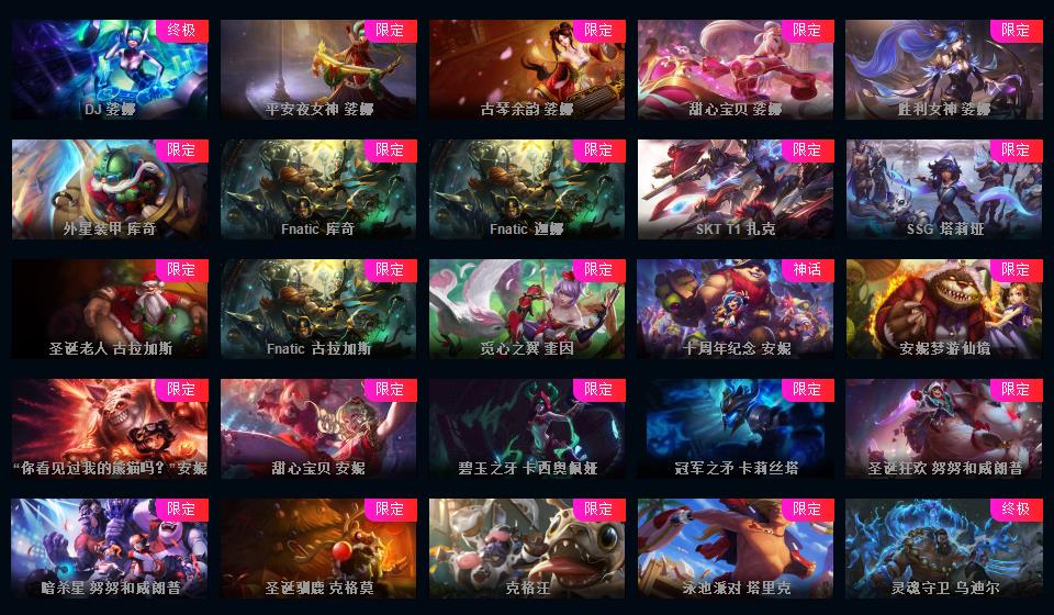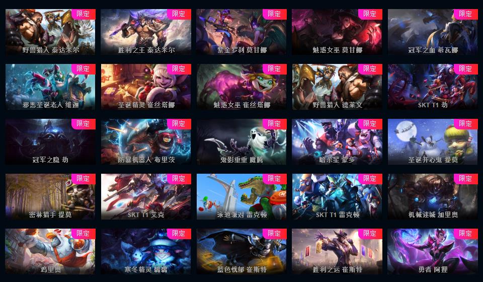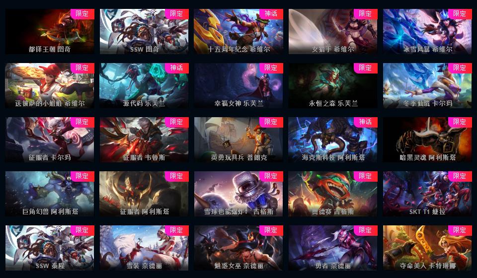 真实1296皮/可排位/15神话/201限定/73传说/龙虾+黑龙-至臻寡妇-小鱼-盖伦-万豪-剑魔-剑姬-石头人等/海克斯科技薇恩/超多年限/冠军皮肤超多