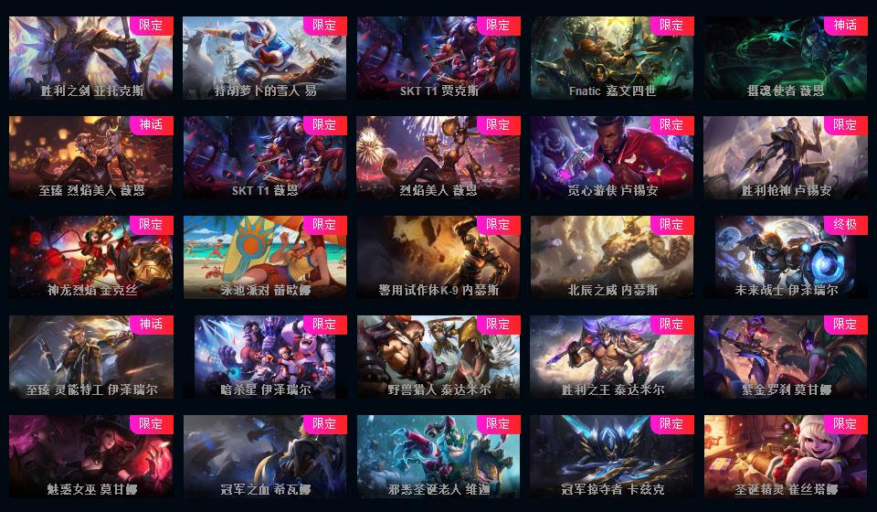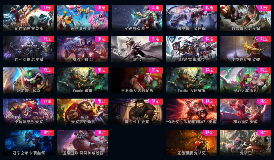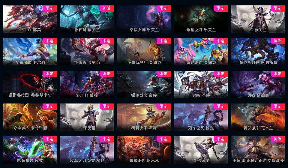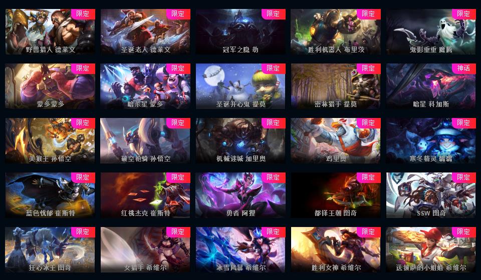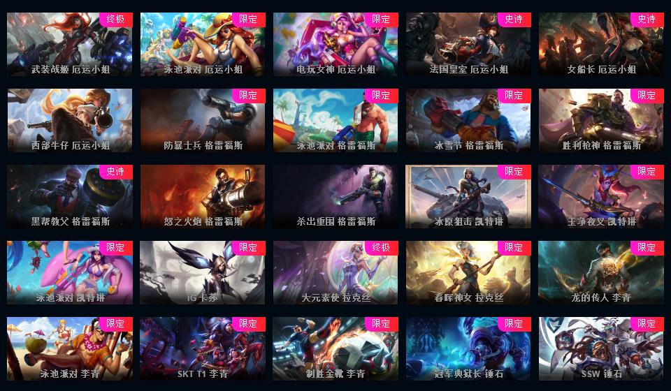 808皮▲龙瞎龙琴龙刀龙猴哥特萝莉克格汪至臻卡莎女警拉克丝▲海克斯安妮鳄鱼