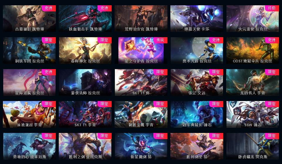 750皮肤◆龙瞎◆龙刀◆龙猴◆海克斯摄魂VN◆诺克恐惧新星◆猴子破空枪骑◆黑色玫瑰LOL星之守护者源