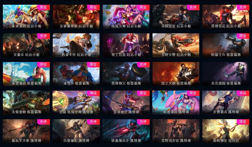 613皮▲108限定皮肤+龙瞎龙琴舞会海克斯安妮花木兰嫦娥等各种年限皮肤多冰原狙击等优质皮肤