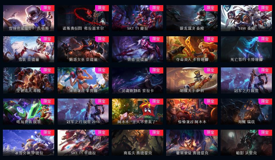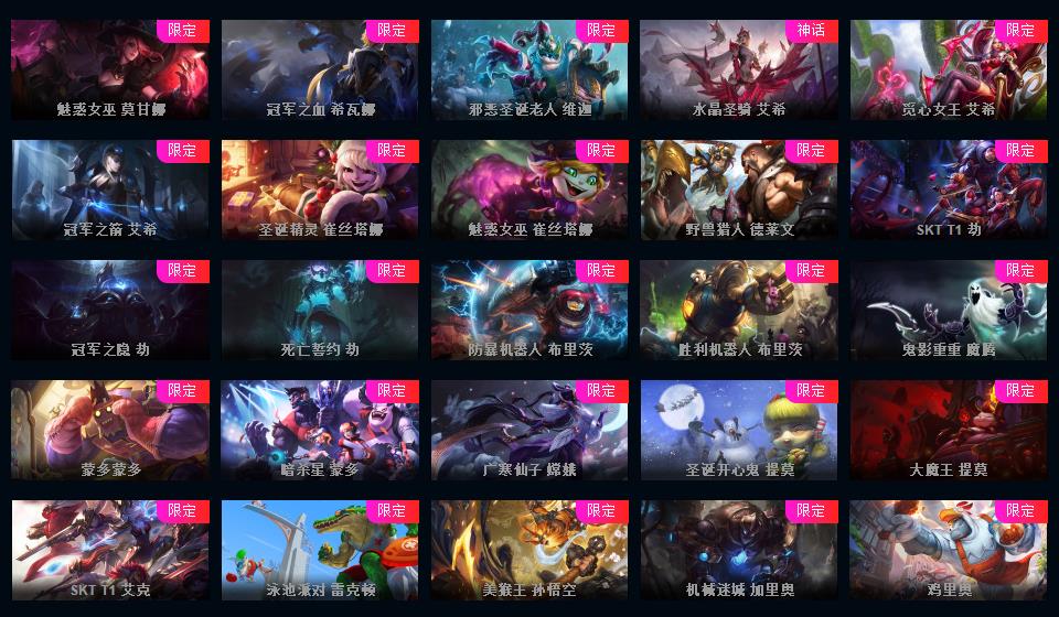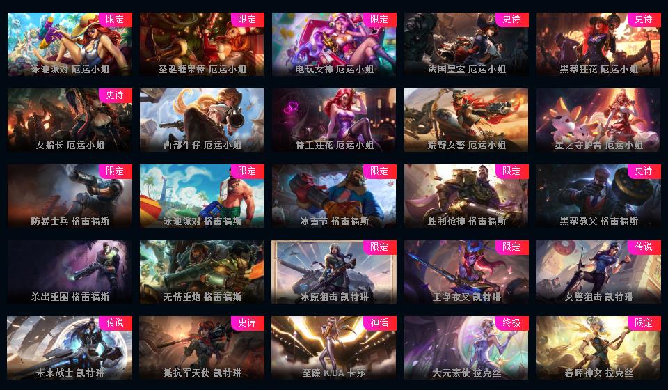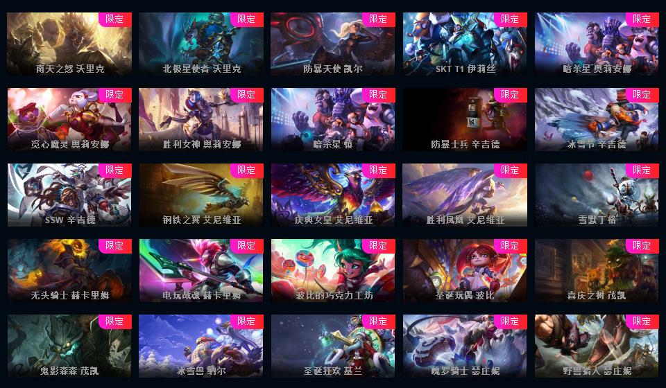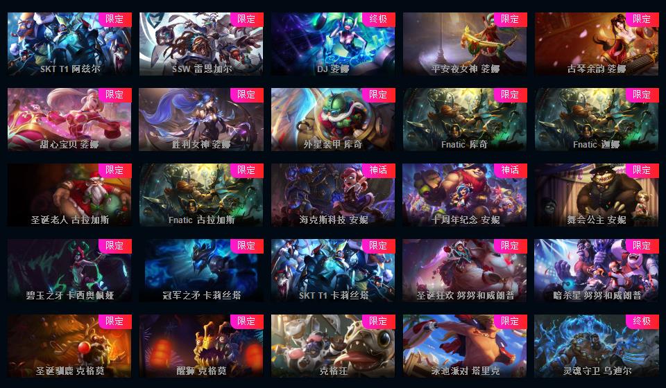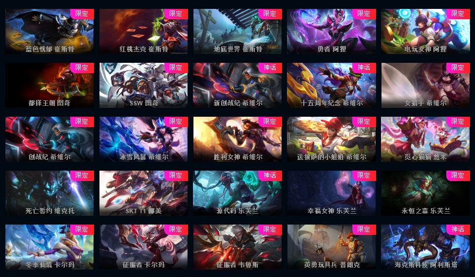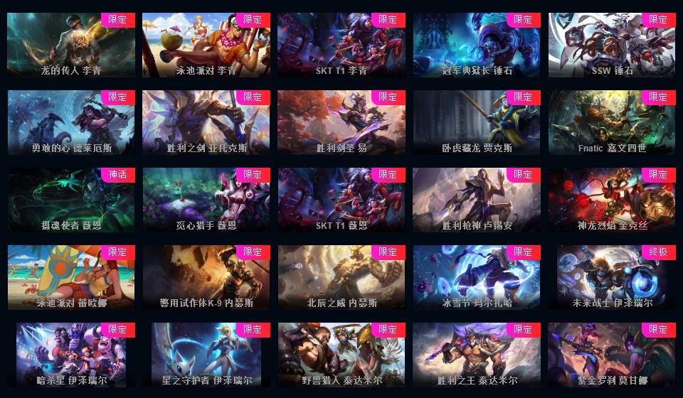 1000皮肤♥龙瞎♥海克斯摄魂VN人马♥送披萨的小姐姐全炫彩♥周年限定♥玉剑传说♥泳池电玩战队