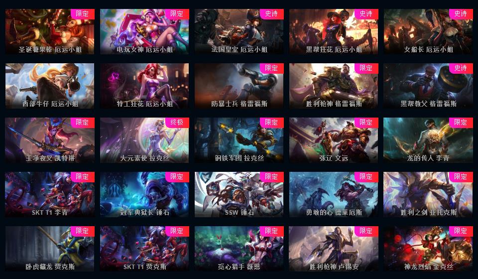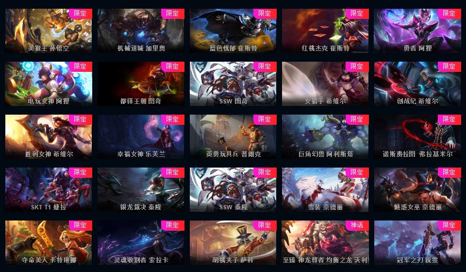 可排位-1469皮-503炫彩-201限定-86传说-34神话至臻-龙虾-至臻卡莎-阿卡丽-寡妇-阿狸-女警-薇恩-ez-万豪-卢锡安等-超多年限-情人节