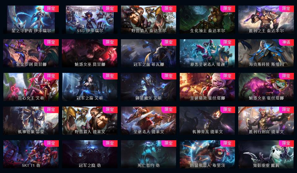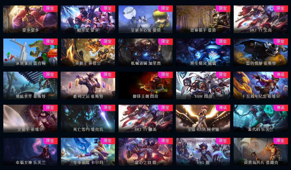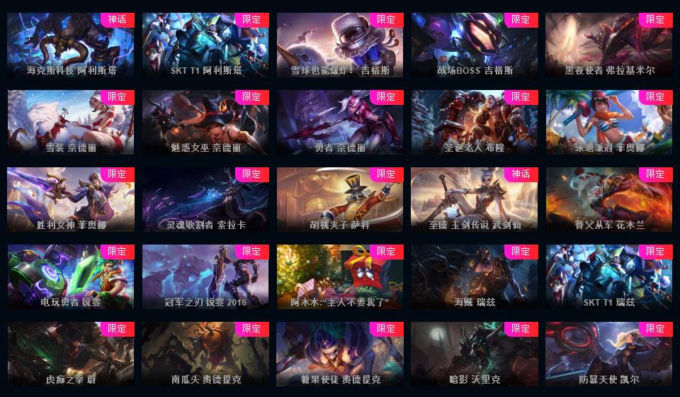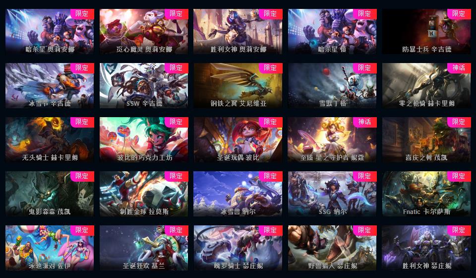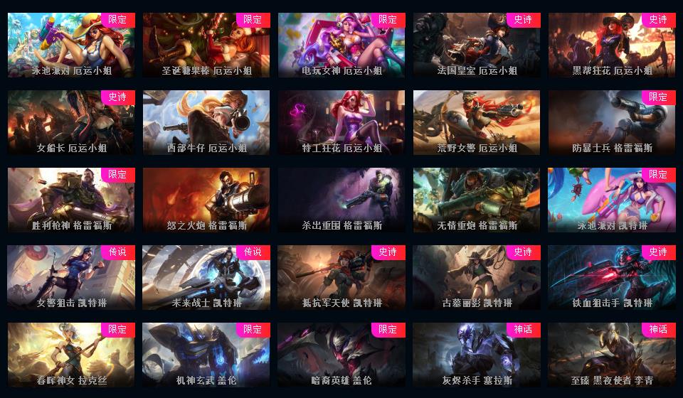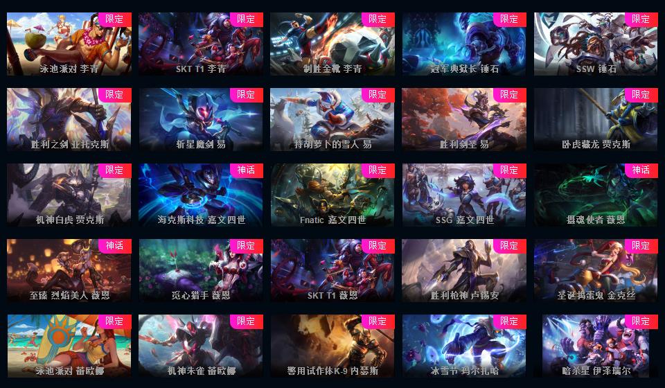 1529p-水晶之痕-48神话-204限定-83传说-龙瞎-海克斯薇恩-恐惧诺手-泳池派对全套-情人节套-冰雪节套-源计划套-冠军皮肤套-超多年限具体游戏见吧