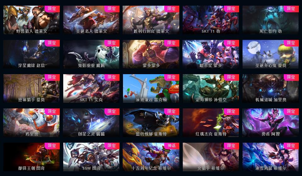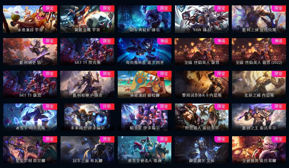 868皮肤👿 全英雄 基乎满皮肤仙剑系列 泳池系列 海克丝系列 TGA限定 花木兰