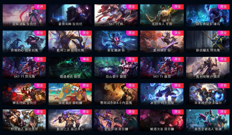 皮肤帝🌺 真实1288皮肤至臻全有 海克丝全有 5色龙虾齐 摄魂VN花木兰原计划 电玩情人节