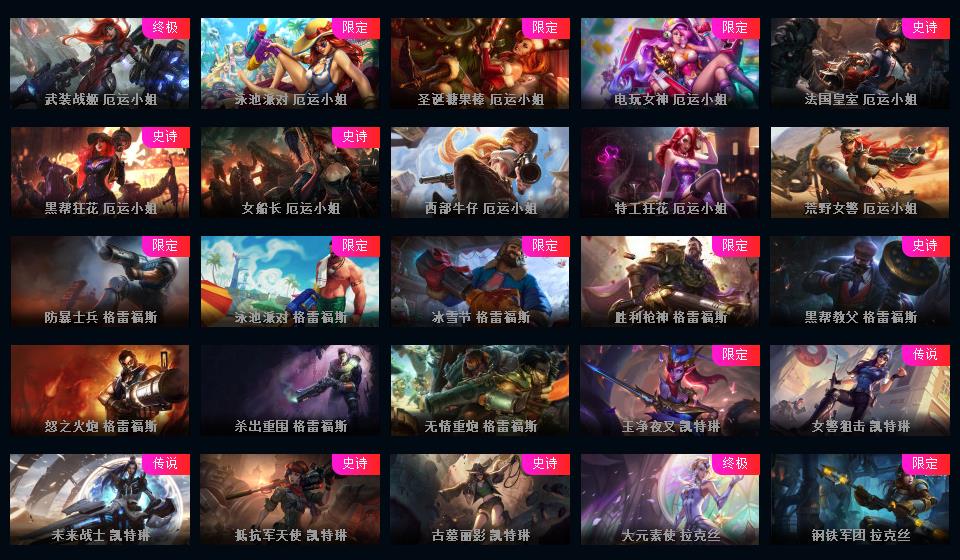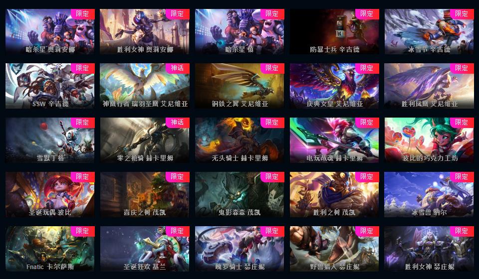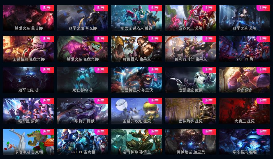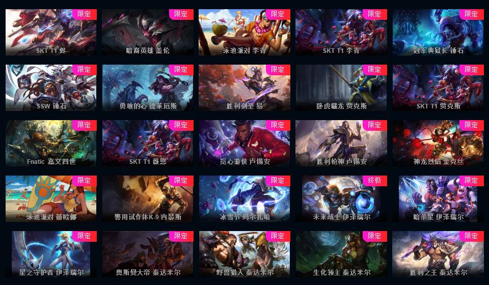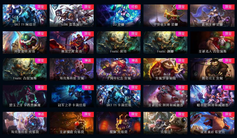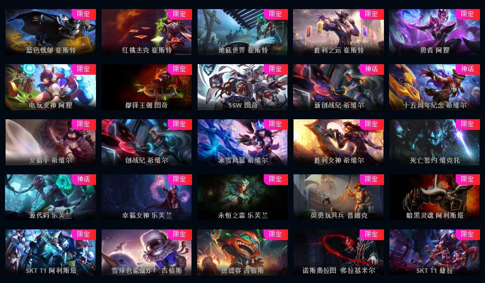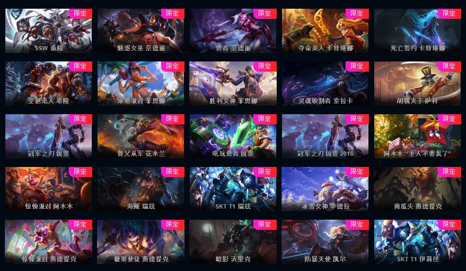 950皮肤◆黄蓝龙虾◆粉色萝莉◆摄魂VN◆海克斯恐惧新星◆斩星魔剑破空枪骑生化领主钢铁烈阳lol星之