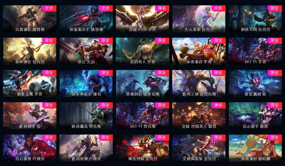 1642p/1110原皮/满英雄/47神话/229限定/龙虾+蓝炫彩/100传说/6终极/阿卡丽寡妇阿狸亚索卡莎琪亚娜至臻/等等具体看图