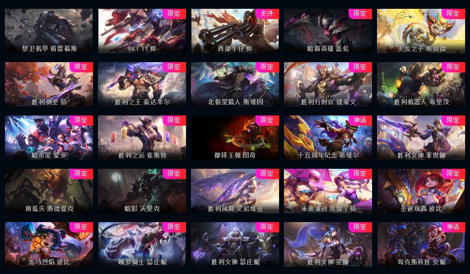 972原皮 532炫彩 12神话 18臻彩 云顶5神话卧龙之境剑魔李青胖胖龙菜大师 龙虾龙刀龙猴 新年限定 情人节 万圣节 冰雪节 电玩系列 源计划 泳池 电玩