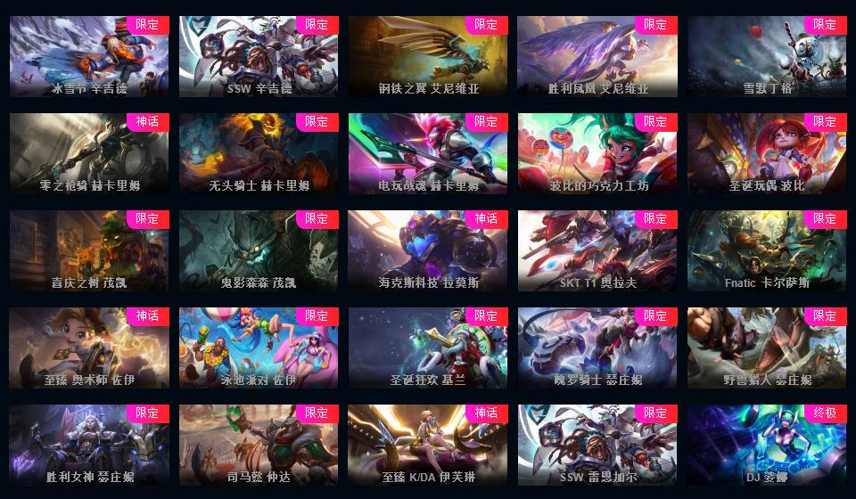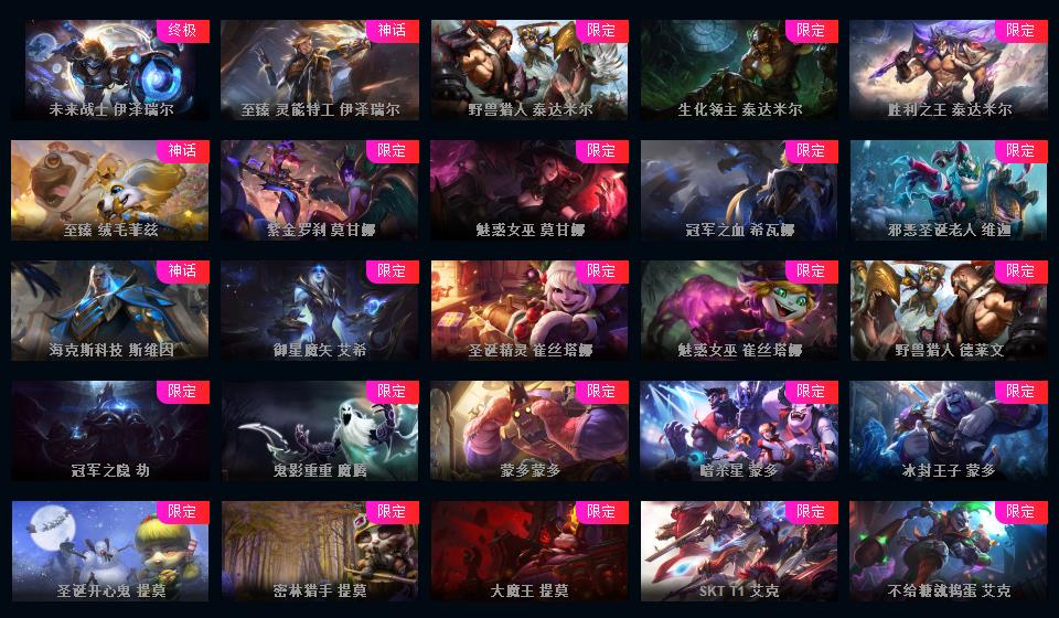 【编号:1077377】 1011皮肤+4终极+21神话+25个三星小小英雄+福星新皮免费+摄魂VN至臻伊芙琳阿狸锤石塞娜瑞文