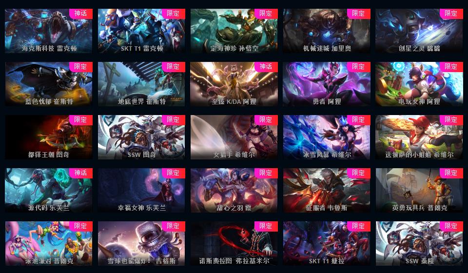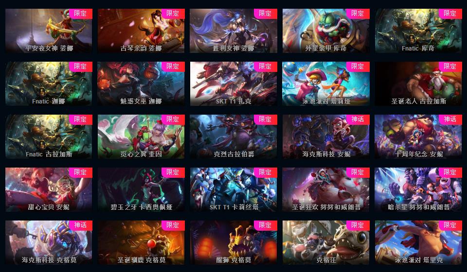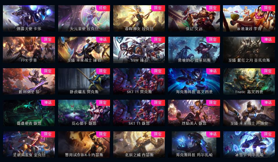 869原皮 353炫彩 17臻彩 25神话 黑色龙虾 福星计划的新皮肤都能用 斗魂沙弥拉 云顶格温 源计划很多 新年限定 冰雪节 万圣节 情人节 玉剑 电玩