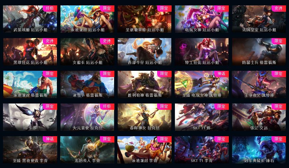 608皮▲全英雄+冰原阻击海克斯鳄鱼创战纪花木兰嫦娥鸡年蔚周年女枪诺手EZ爱心头羊年金克丝情人节发条艾希奎因琴女