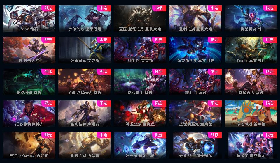 1985皮极品皮肤号▲神话小小英雄亚索安妮神话棋盘怪兽来袭+至臻海克斯年限节日限定皮肤超多龙瞎等皮肤全有(部分优质皮看截图)