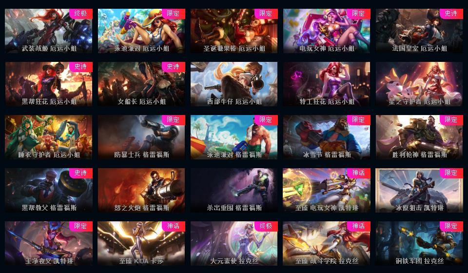 1011皮肤+4终极+21神话+25个三星小小英雄+福星新皮免费+摄魂VN至臻伊芙琳阿狸锤石塞娜瑞文