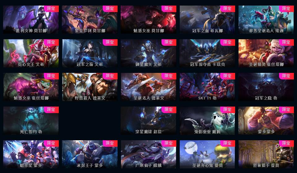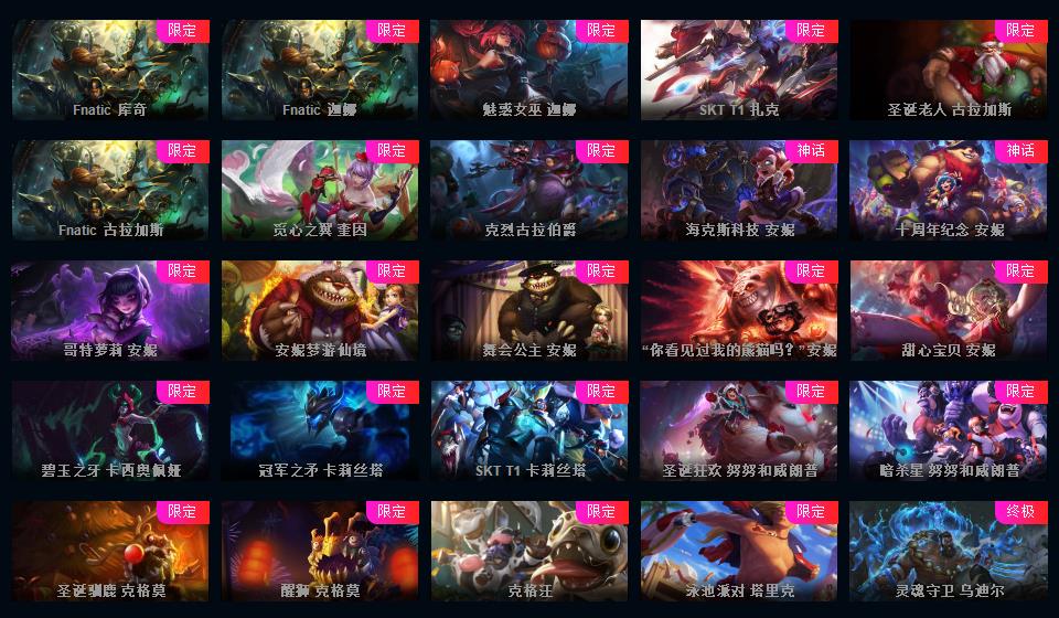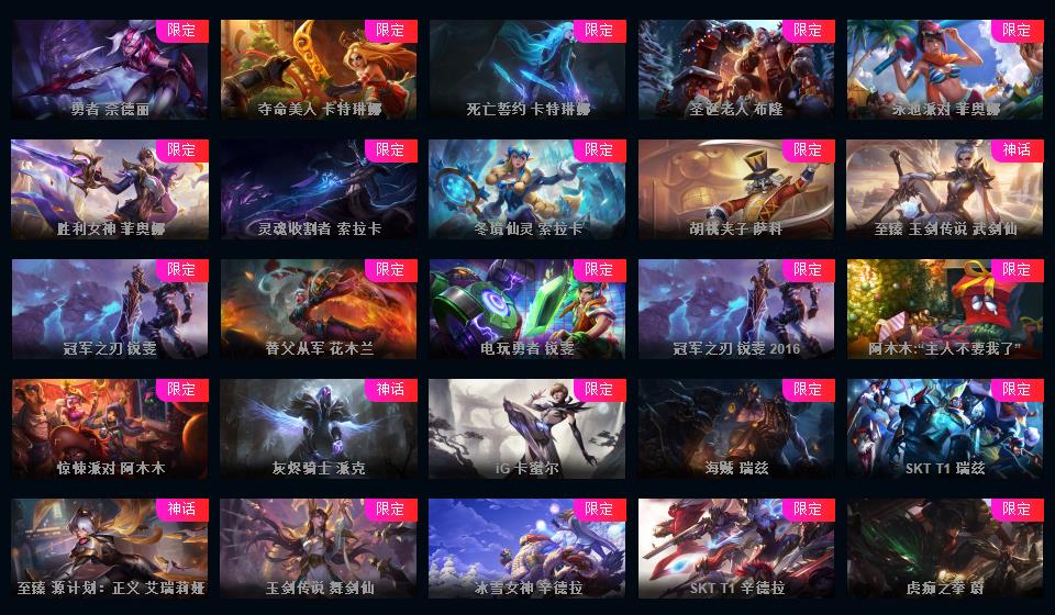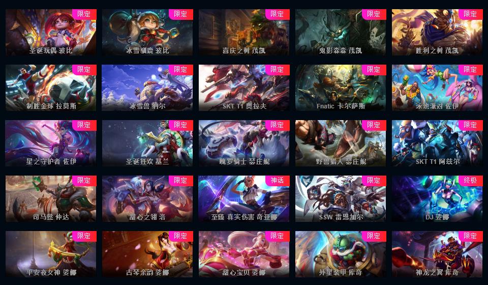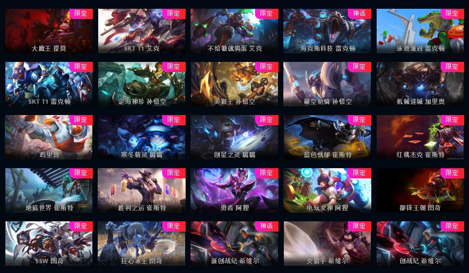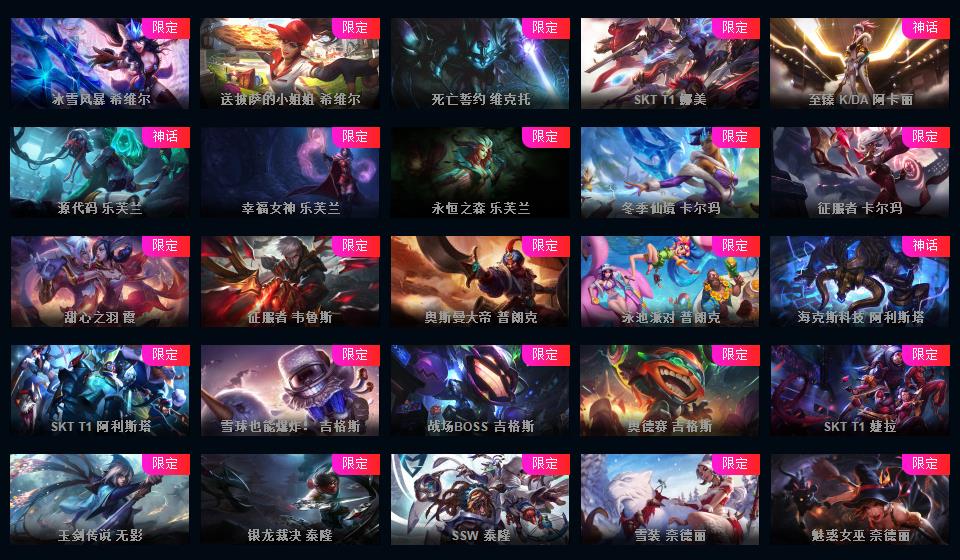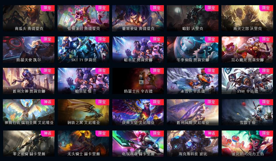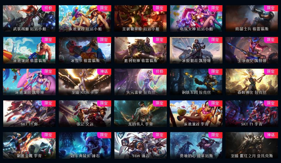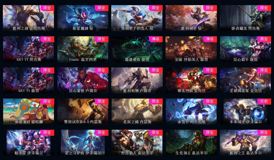 972原皮 532炫彩 12神话 18臻彩 云顶5神话卧龙之境剑魔李青胖胖龙菜大师 龙虾龙刀龙猴 新年限定 情人节 万圣节 冰雪节 电玩系列 源计划 泳池 电玩