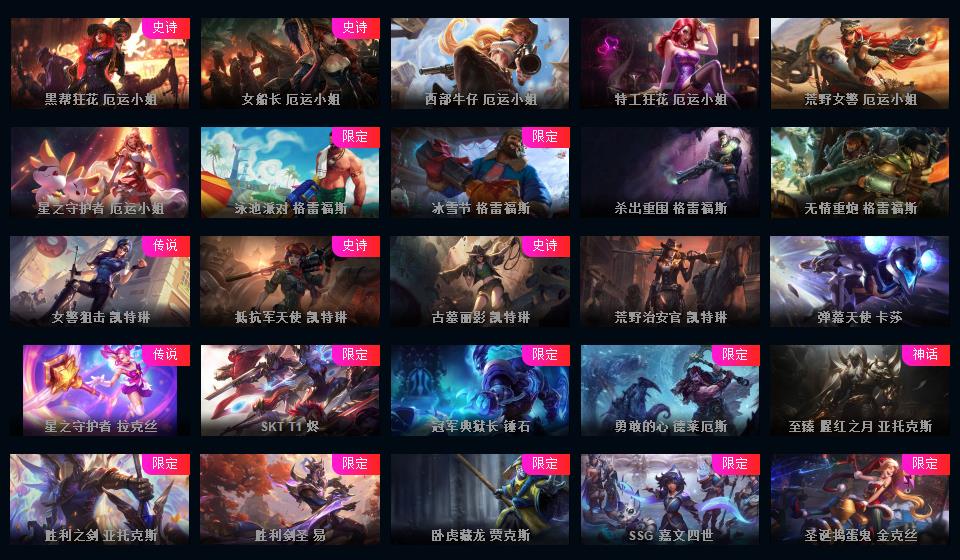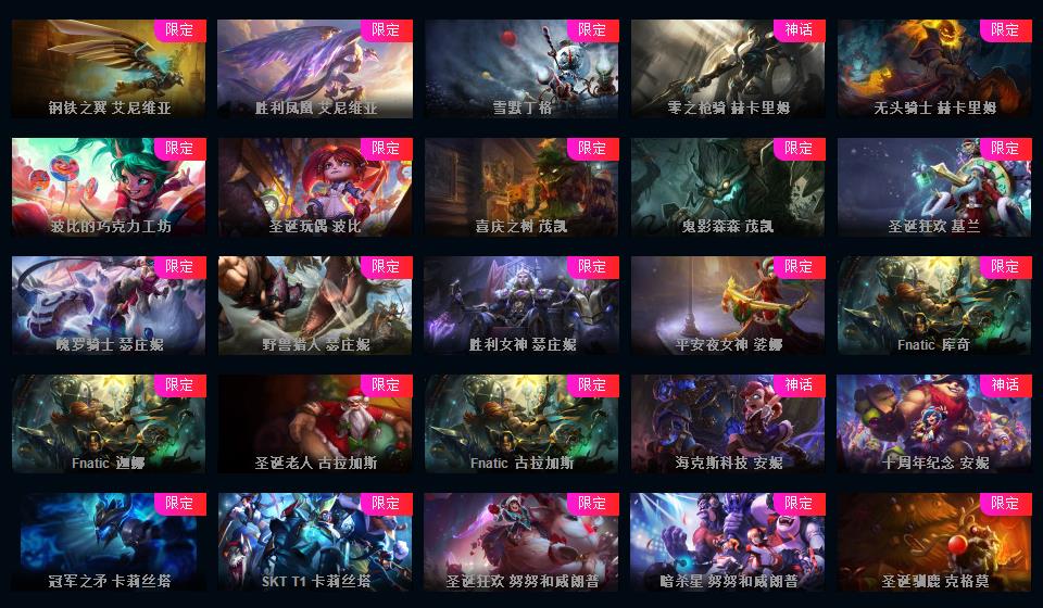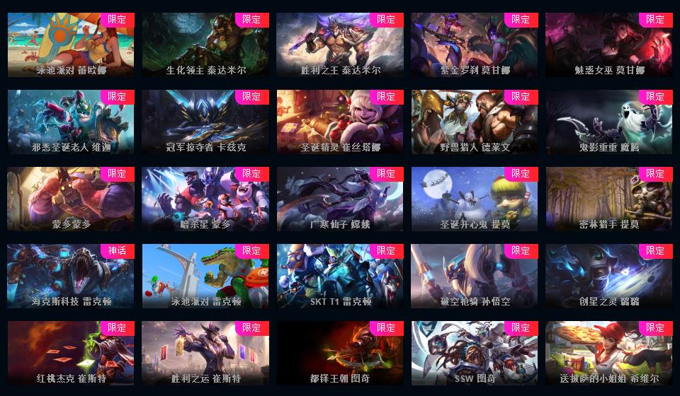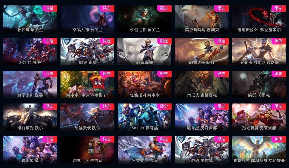 972原皮 532炫彩 12神话 18臻彩 云顶5神话卧龙之境剑魔李青胖胖龙菜大师 龙虾龙刀龙猴 新年限定 情人节 万圣节 冰雪节 电玩系列 源计划 泳池 电玩