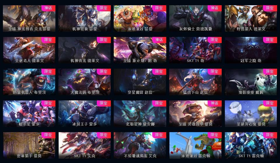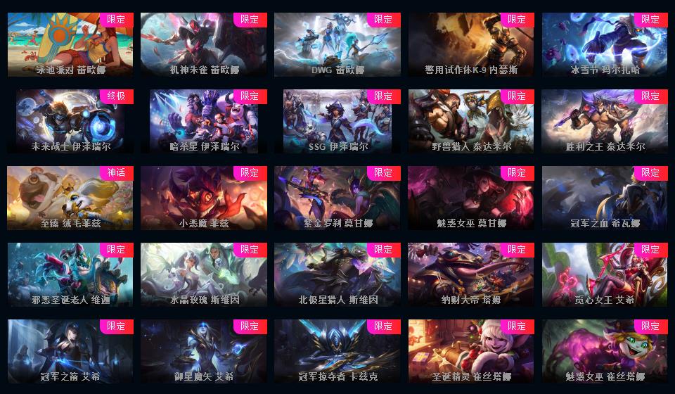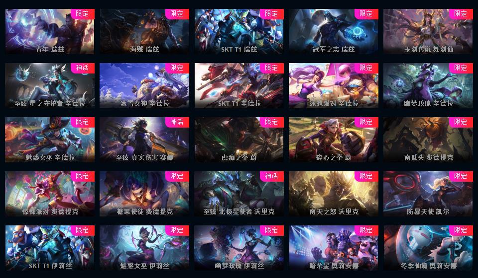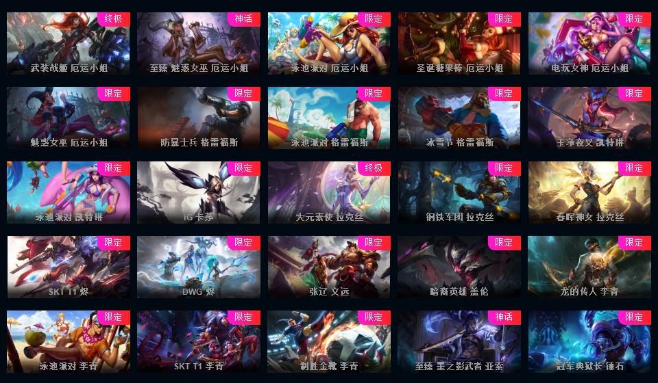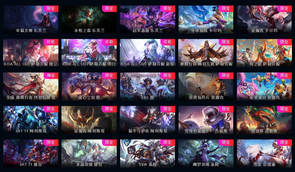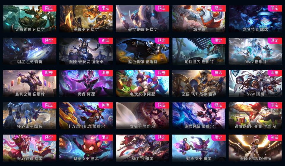 947原皮 264炫彩 32神话 18臻彩 猴年套 狗年套 蛇年套 鸡年套 马年套 羊年套 ig套 斩星剑圣 卧虎藏龙 源计划一套 金粉臻彩刀妹辛德拉金克斯卡莎