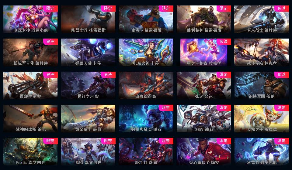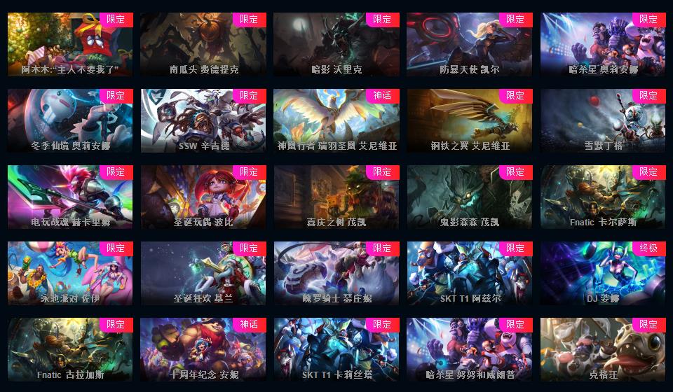 可排位-1469皮-503炫彩-201限定-86传说-34神话至臻-龙虾-至臻卡莎-阿卡丽-寡妇-阿狸-女警-薇恩-ez-万豪-卢锡安等-超多年限-情人节