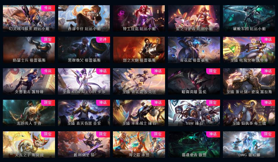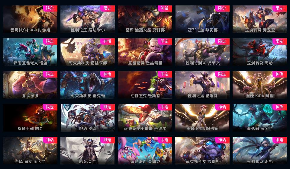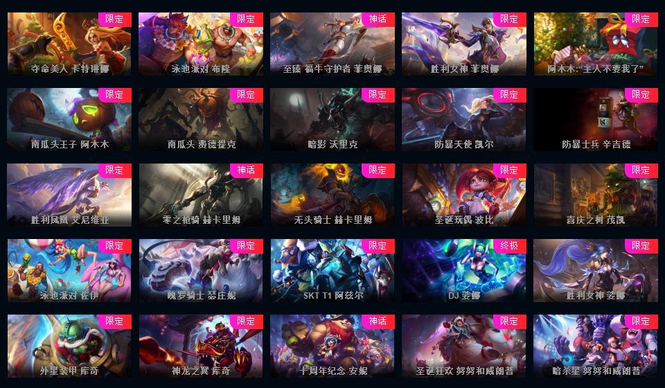868皮肤👿 全英雄 基乎满皮肤仙剑系列 泳池系列 海克丝系列 TGA限定 花木兰