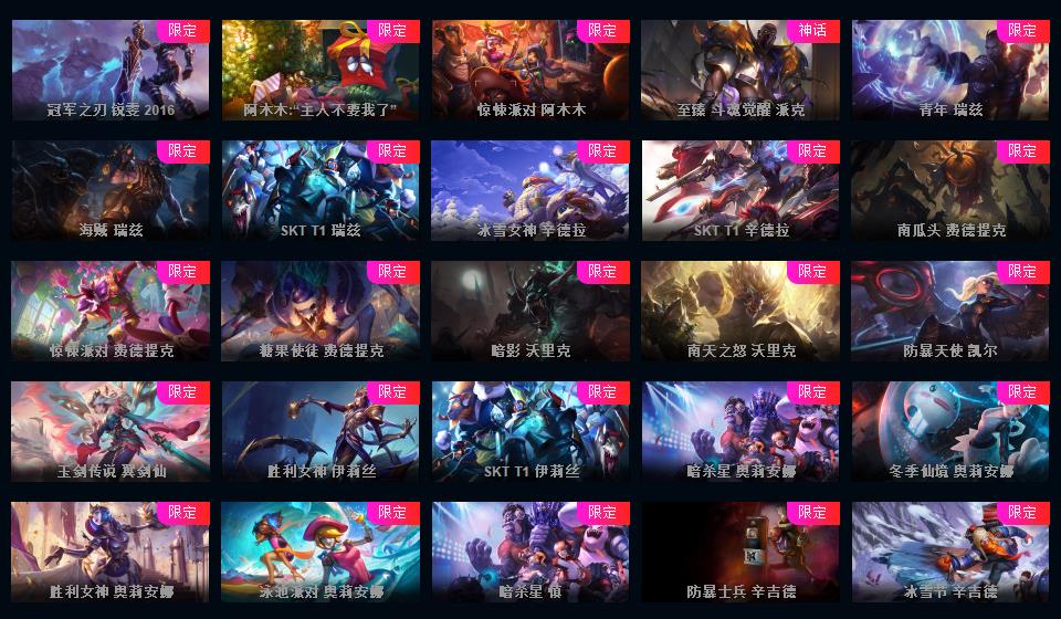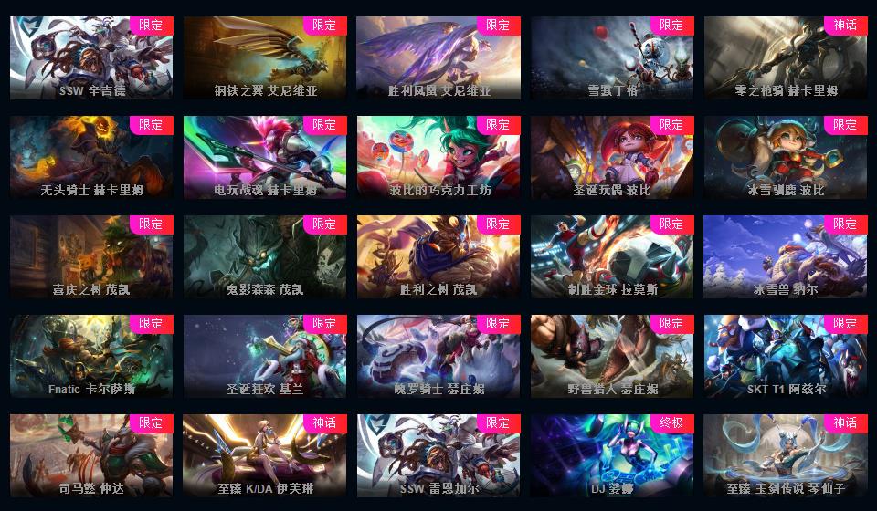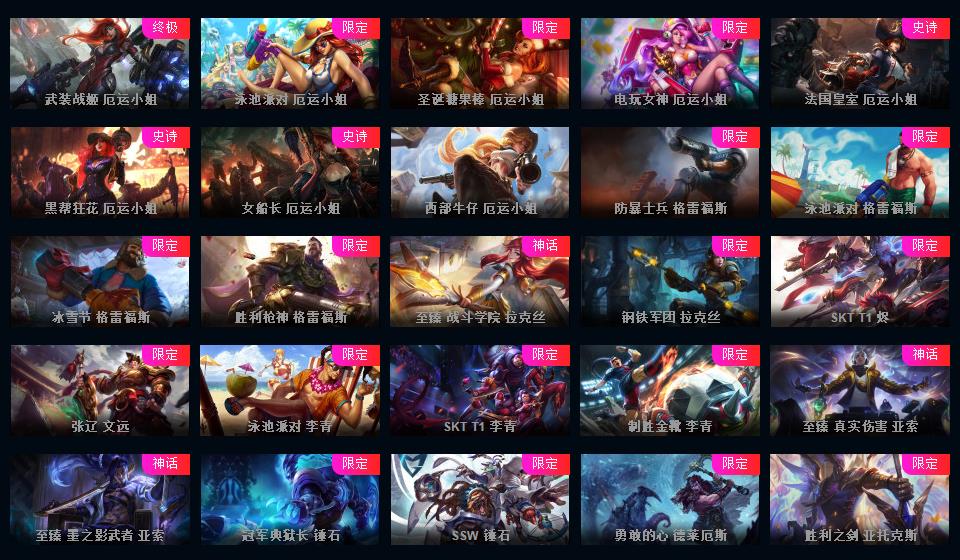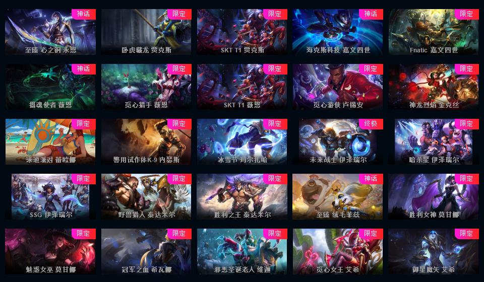1453P-皮城警备可排位-31神话-183限定-90传说-全史诗-龙虾-至臻卡莎-亚索-永恩-ez-瑞文-万豪-女枪-希维尔等等-超多年限-情人节套-星守套等