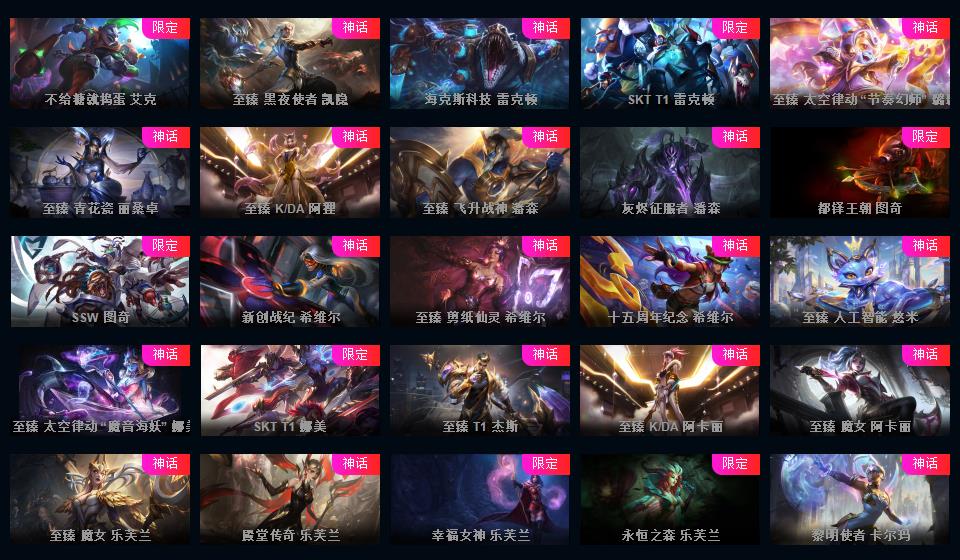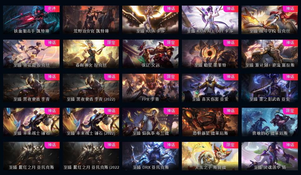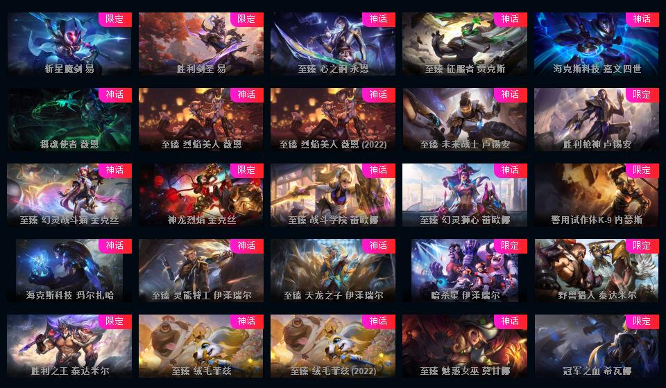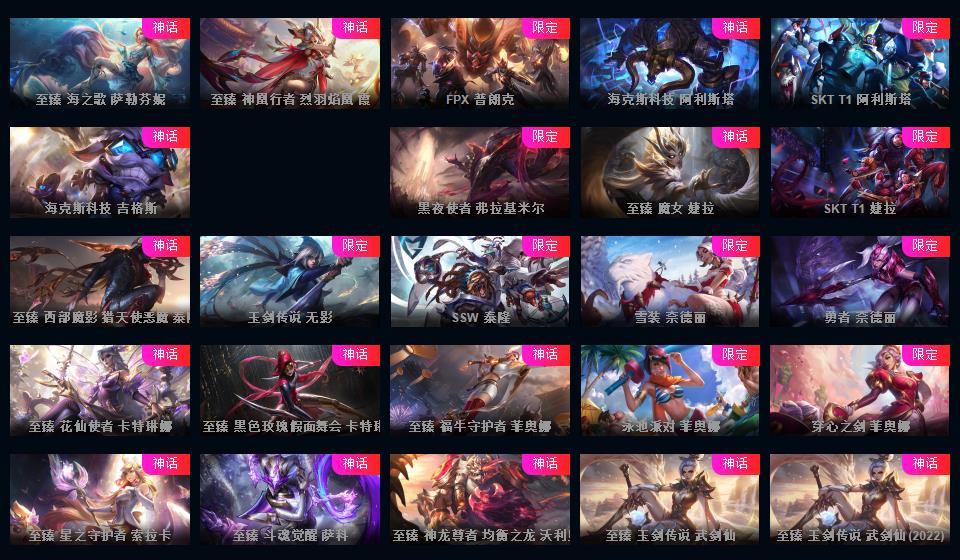 【编号:1276145】 1255皮🌼满神话+全系列至臻皮肤(有最新至臻)+3星小小英雄+周年男女刀+黑夜吸血鬼+海克斯皮肤多+全英雄高质量皮肤号