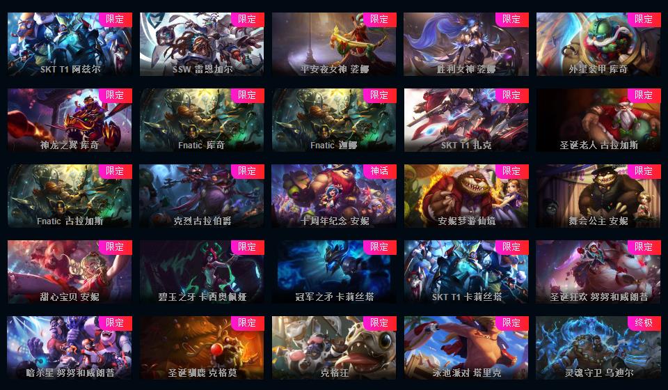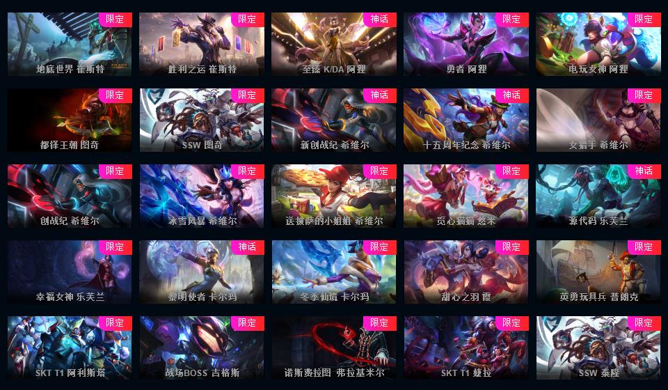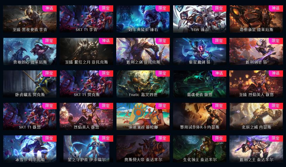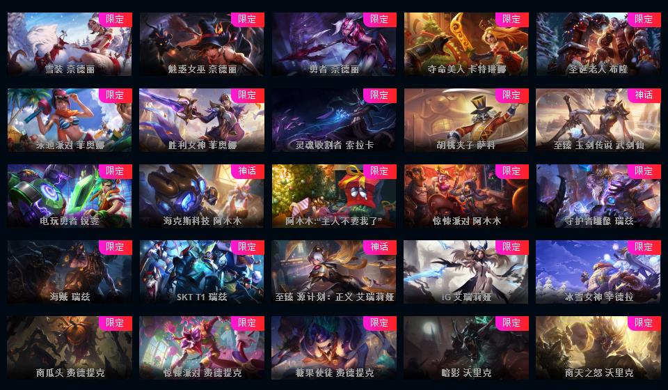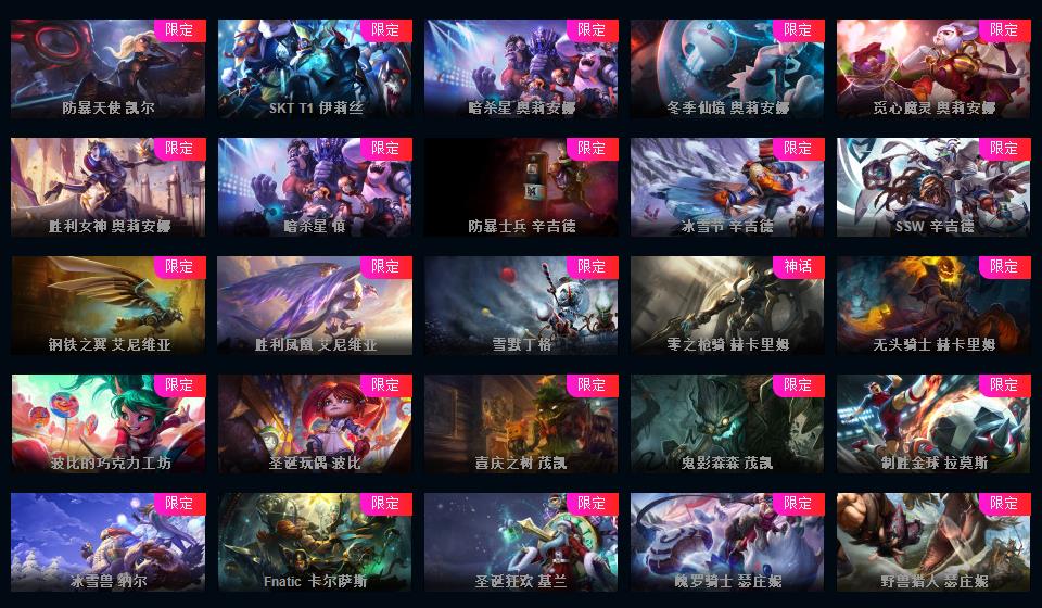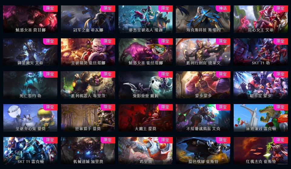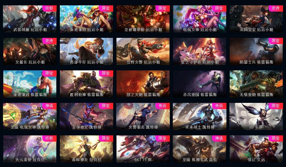 可排位-1607皮-456炫彩-217限定-101传说-29神话至臻-龙虾-至臻卡莎-阿卡丽-寡妇-阿狸-女警-薇恩-ez-万豪-卢锡安等-超多年限-情人节